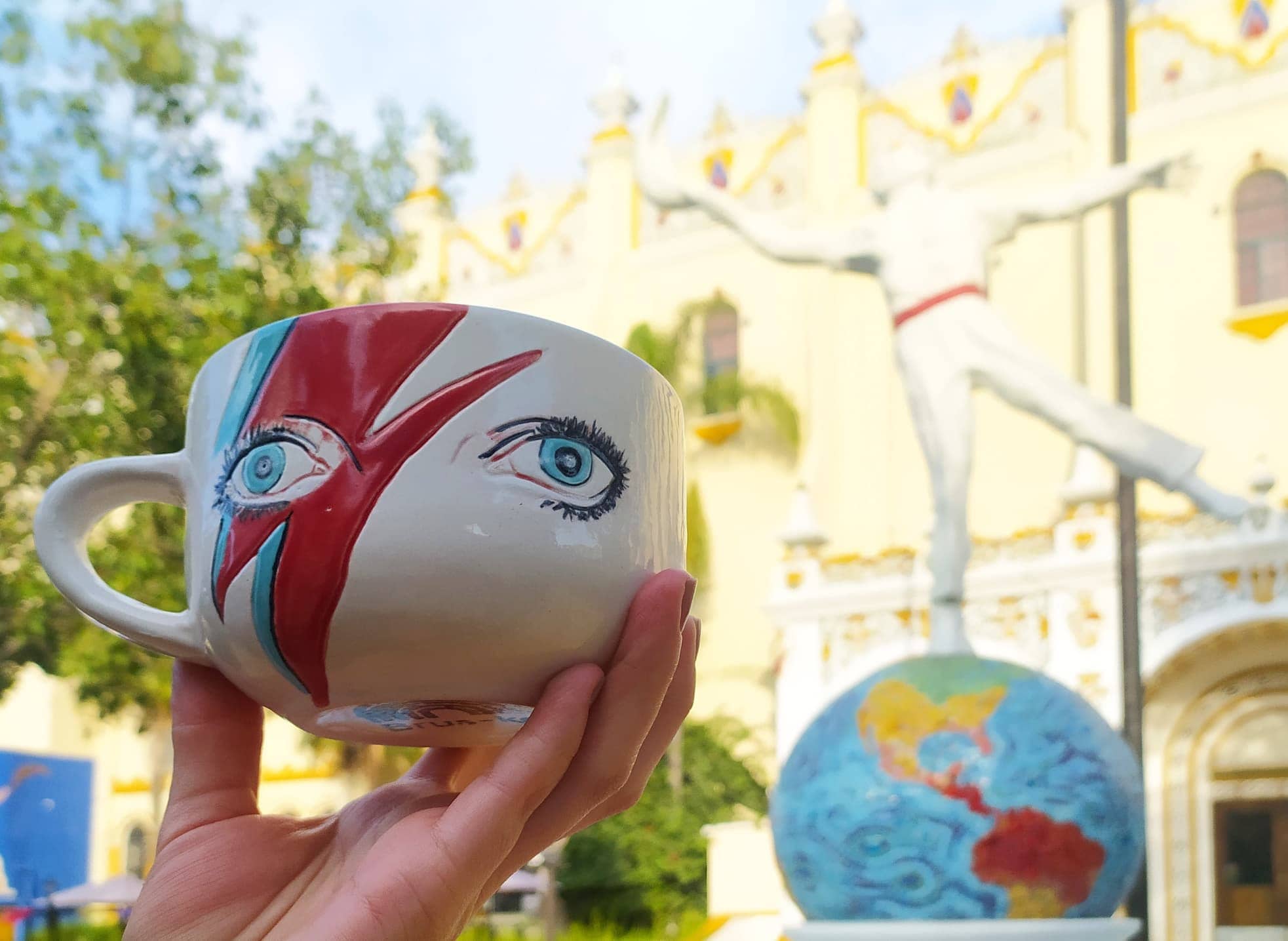 Taza de cerámica Ziggy Stardust, moldeada, grabada y pintada 100% a mano por mí. Ideal...