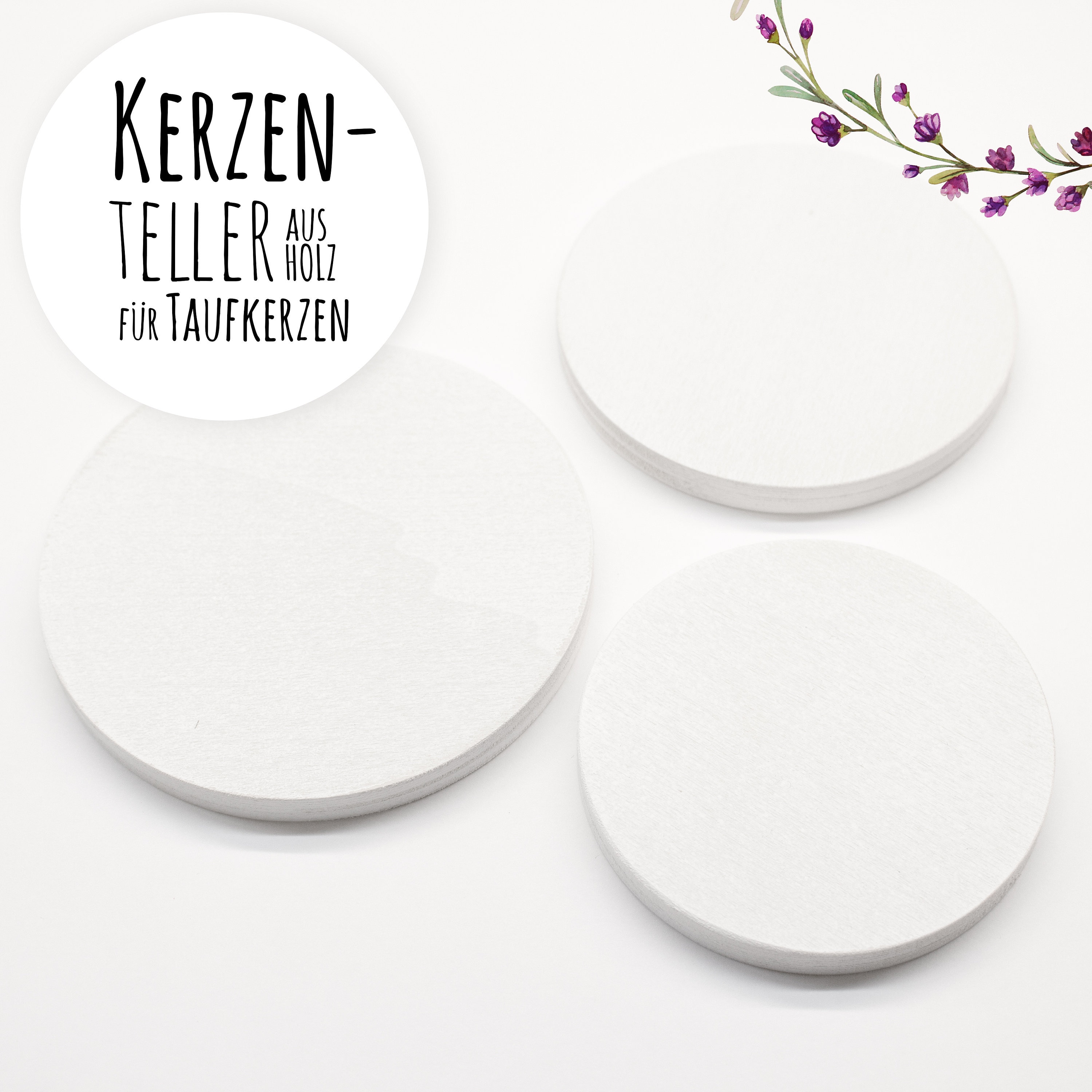 Delivery time: 1-3 days Wooden candle plate in white for christening candle (Available in 3 sizes) A...