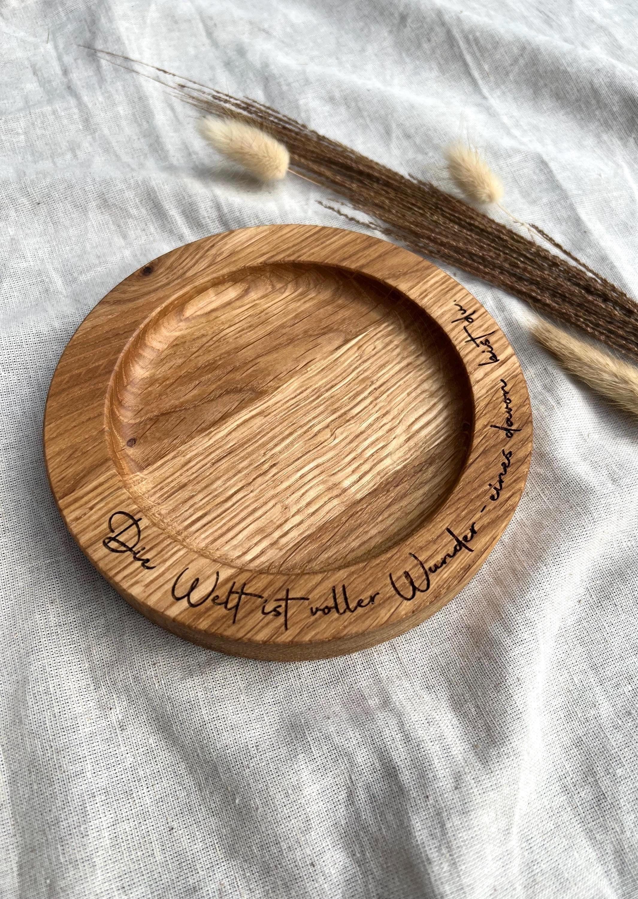 A stylish, handcrafted candle plate made of solid oak, lovingly personalized with a name, date, and ...