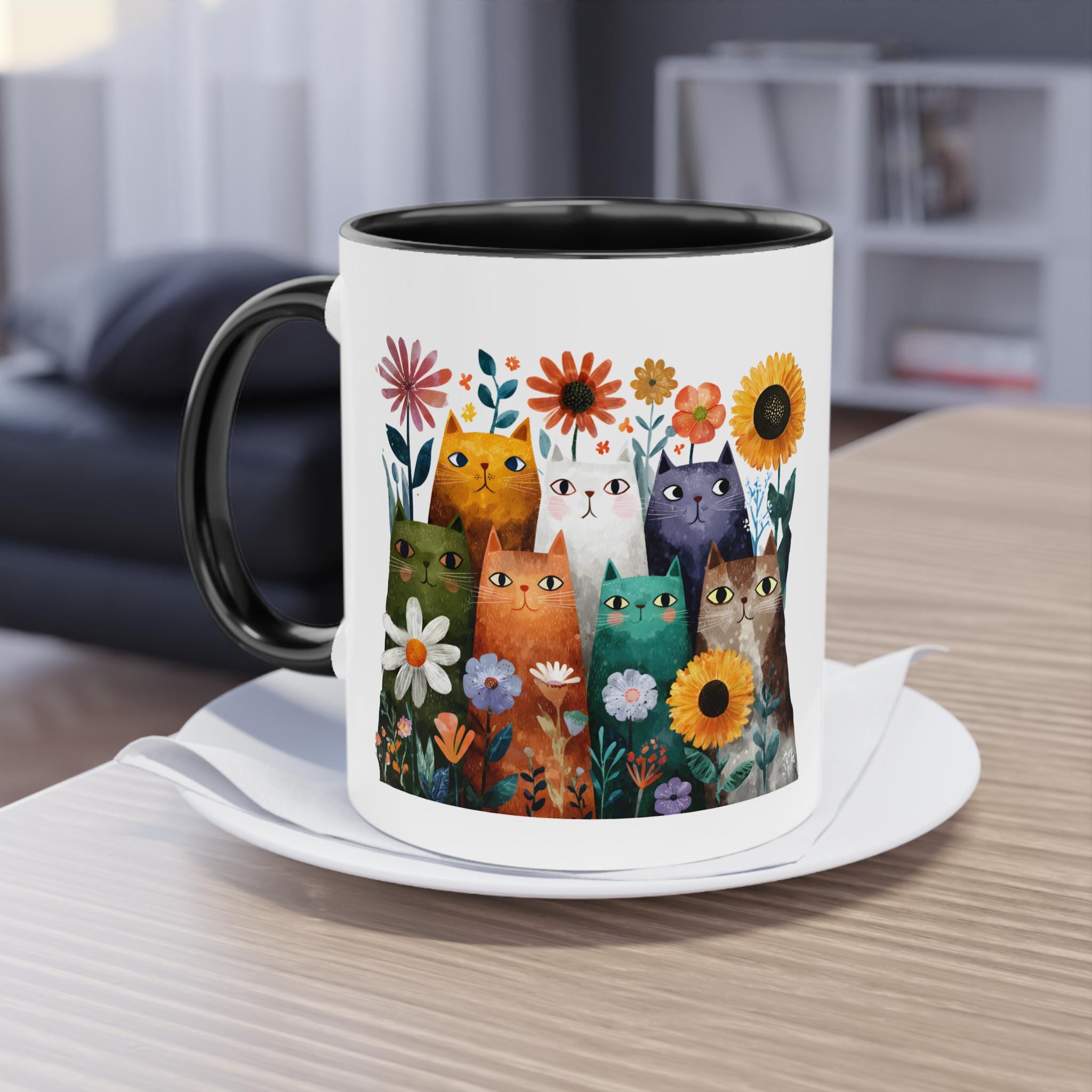Add a pop of color and personality to your morning with this Colorful Cats & Flowers Mug . Featu...