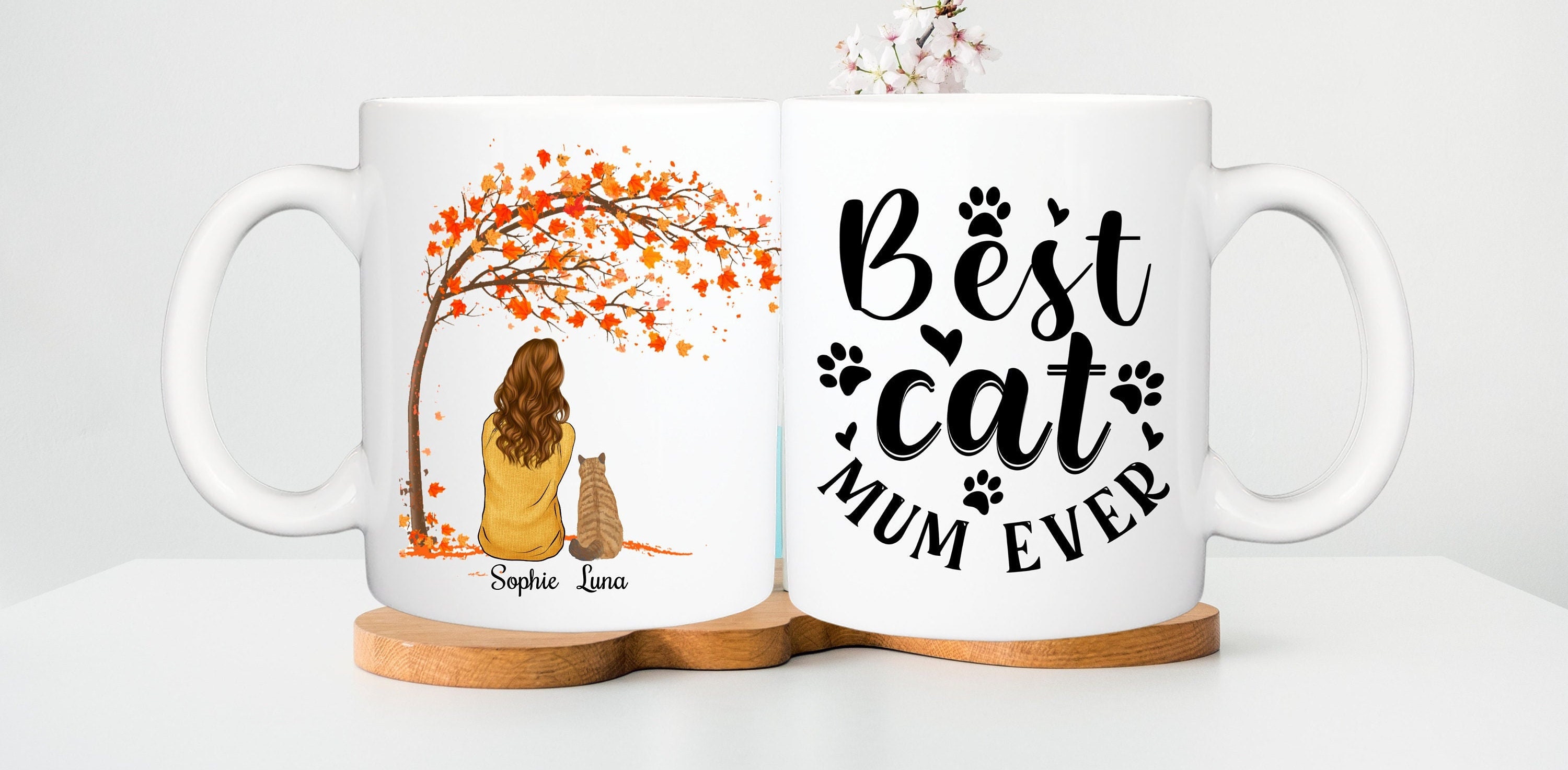 You can add more than 1 cat :) Personalised Cat Mug, Woman and Cat, Cat Lover, Cat Owner, Gift for C...
