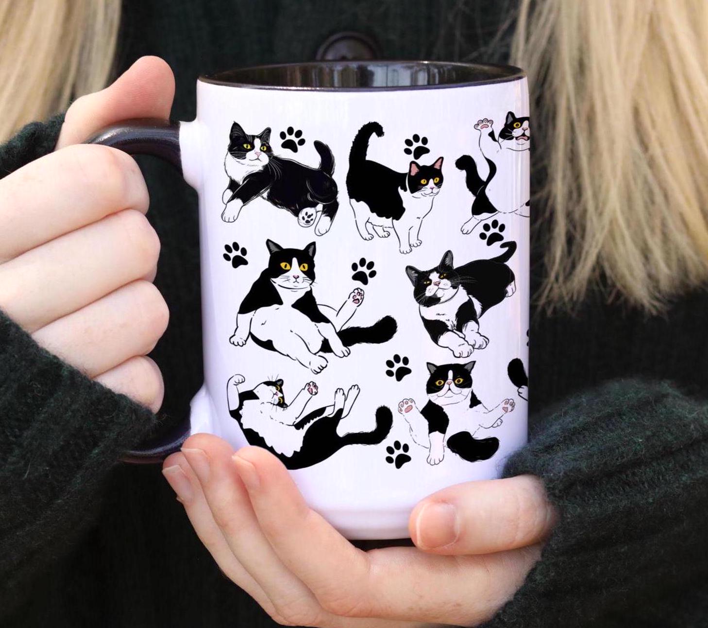 Custom Cat Mug Cat Lover Gift For Cat Mom Ceramic Latte Mug Black C...