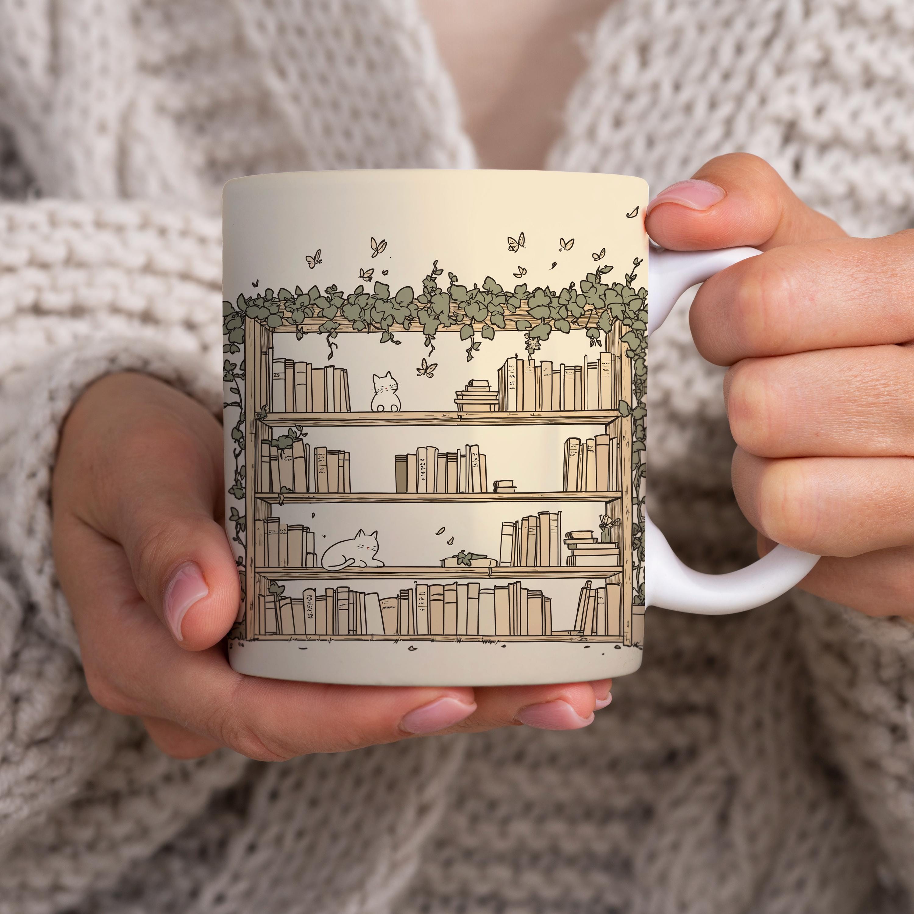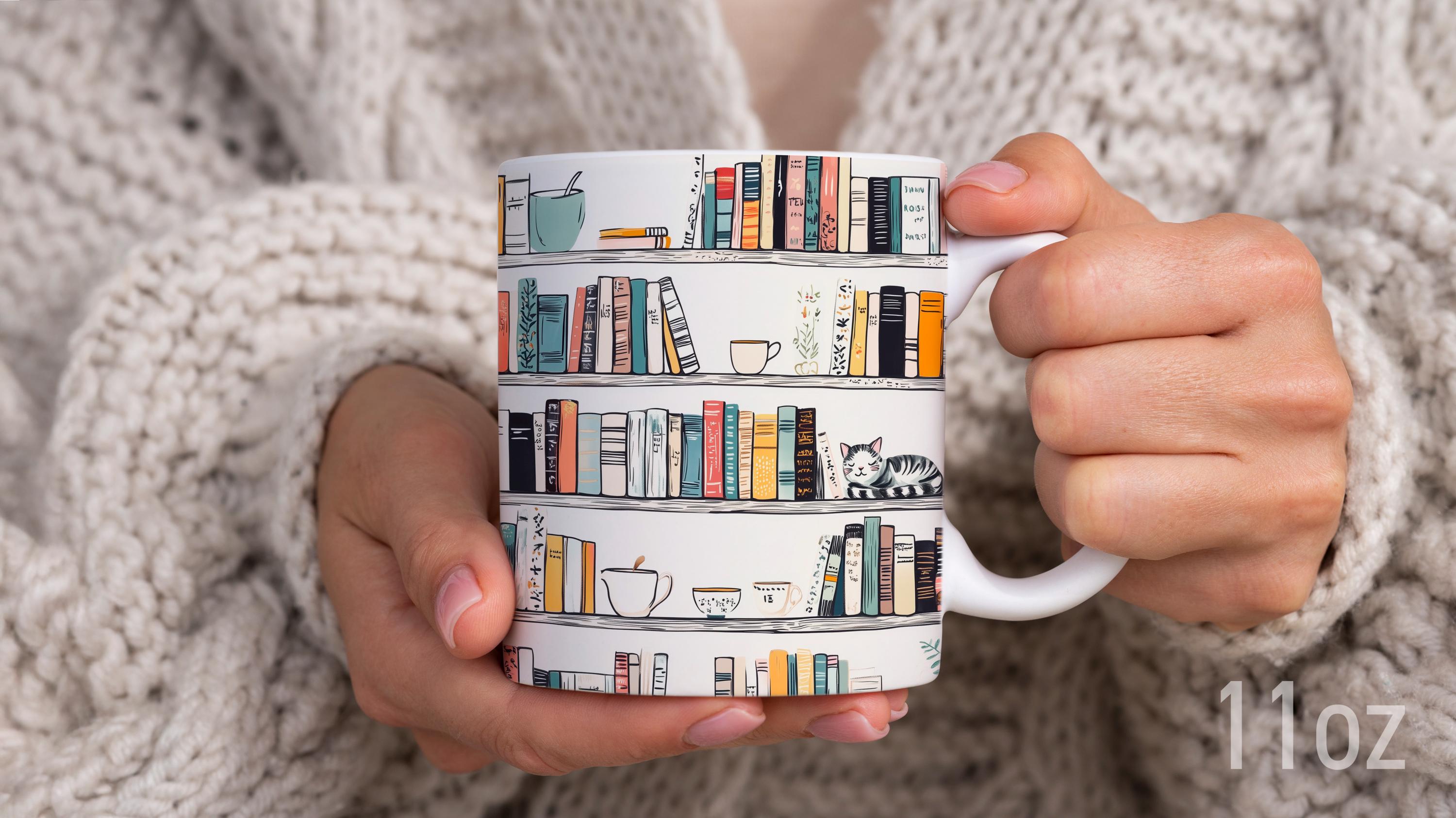 Bookshelf Cat Ceramic Coffee Mug, Book Lover Gift, Reading Mug for ...