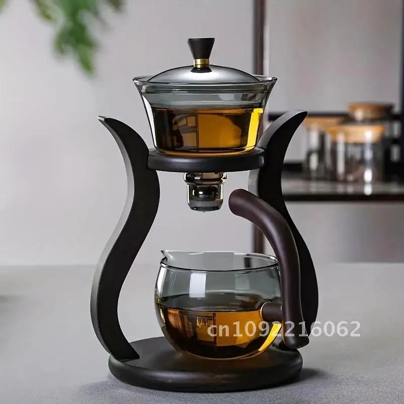 Lazy Kung Fu Glass Tea Set Semi Automatic Drip With Infuser Glass Teapot Set Magnetic Switch Teapot ...