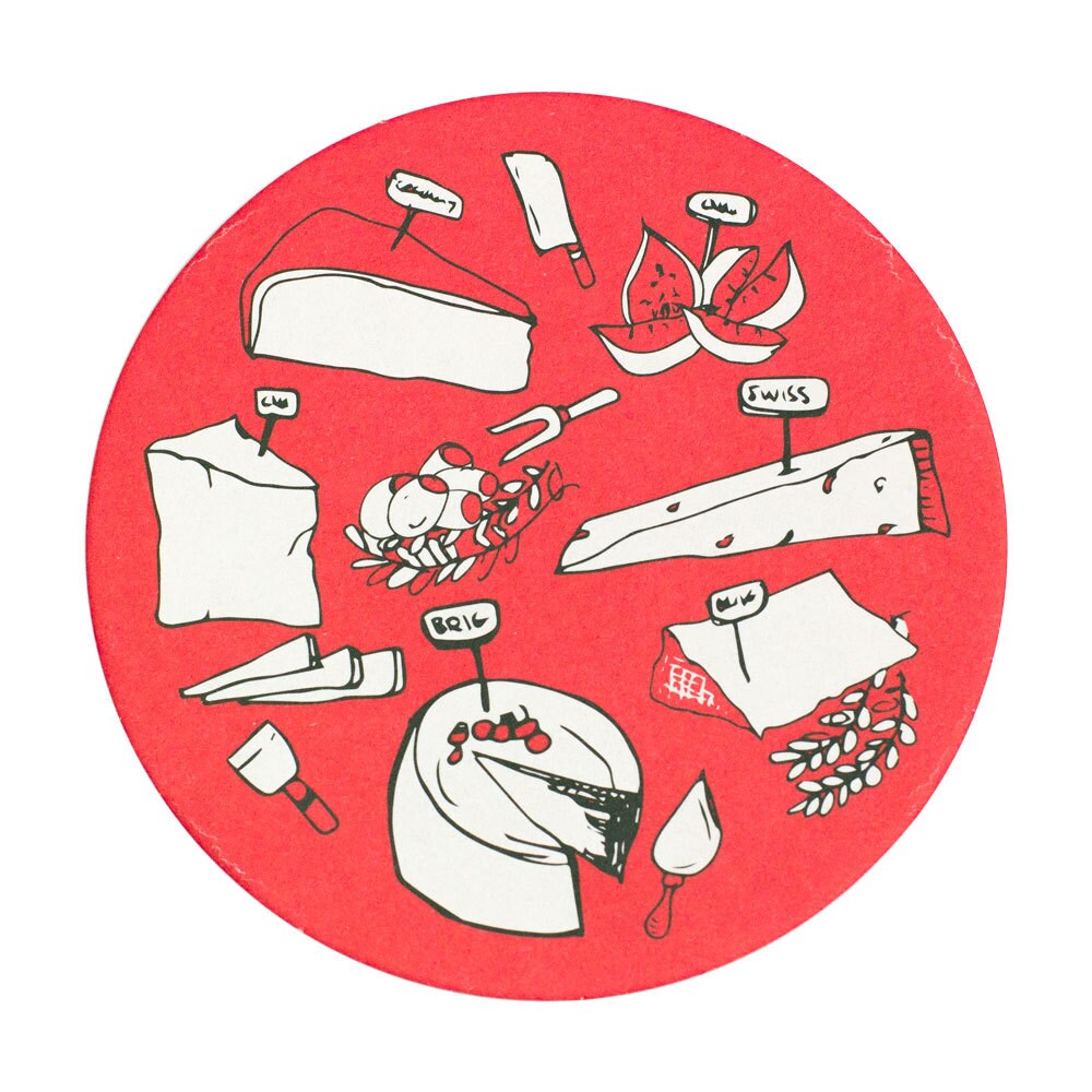 "It's artisan cheeses on a reusable, highly absorbent coaster. I mean, c'mon. How cute is that?...