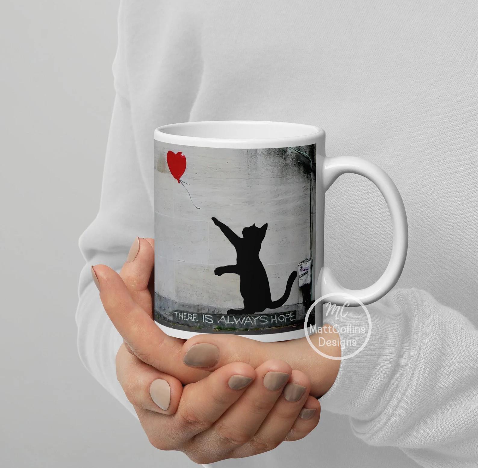 Banksy Mug Banksy Graffiti Mug Girl with Red Balloon Black Cat Mug ...