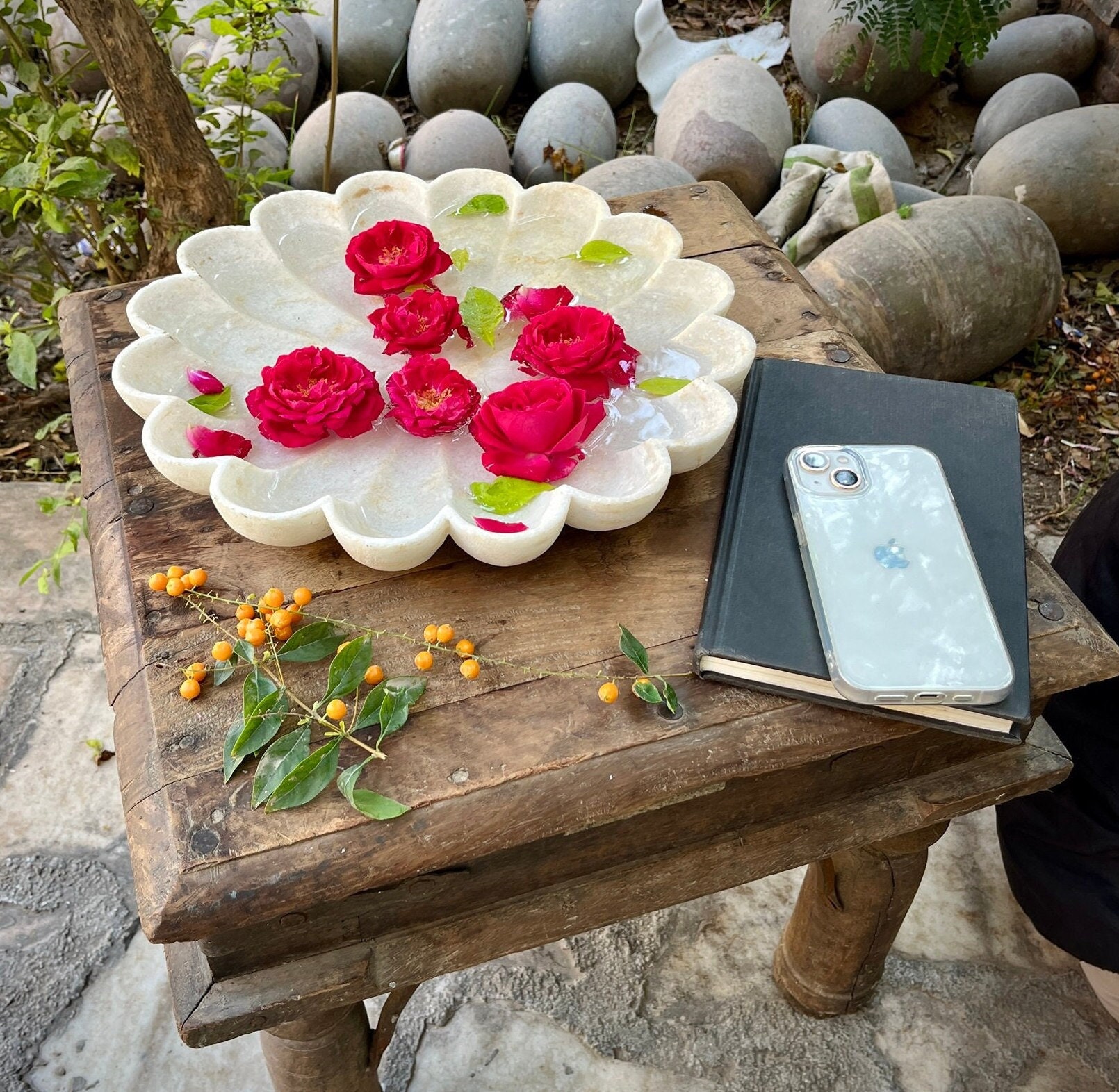 Decorative Marble Floral Bowl, White Marble Ruffle Bowl, Marble Fru...