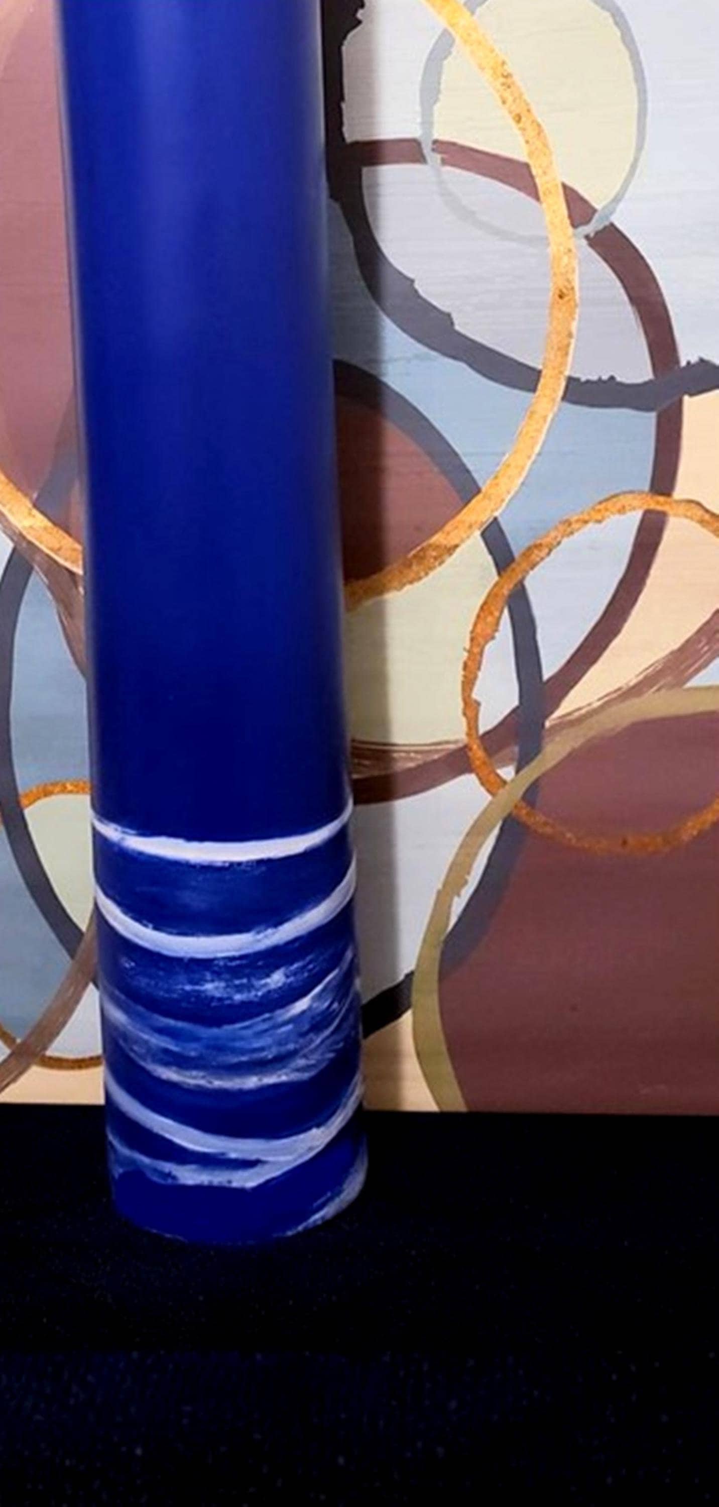 "This beautiful, one of a kind glass vase has been hand painted in various shades of Cobalt Blu...