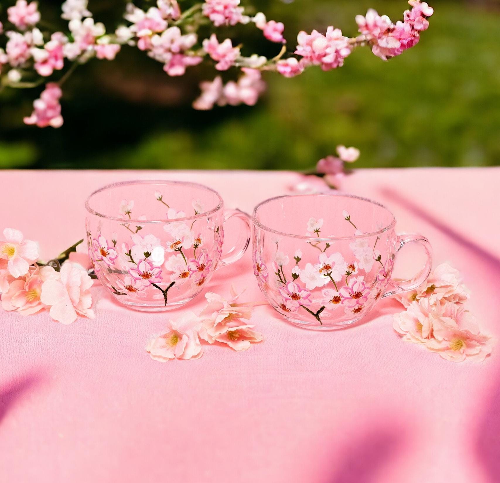 Cherry Blossom Tea Cups Pink Cups Flower Tea Cup Pink Mugs for Her ...