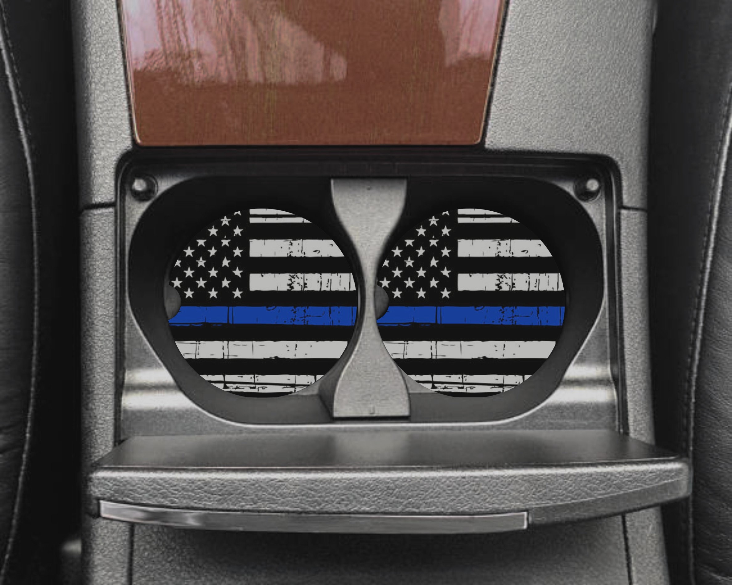 Thin Blue Line Car Cup Coaster - Custom Car Decor - Car Accessories...