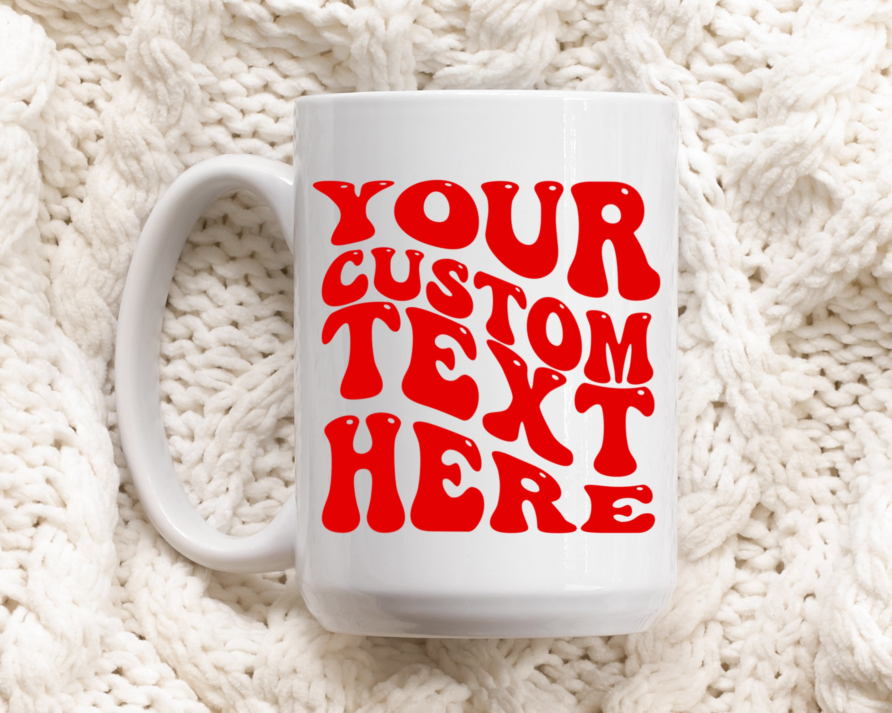 Personalized Custom Wavy Retro Text Mug, Custom Mugs, Build Your Ow...
