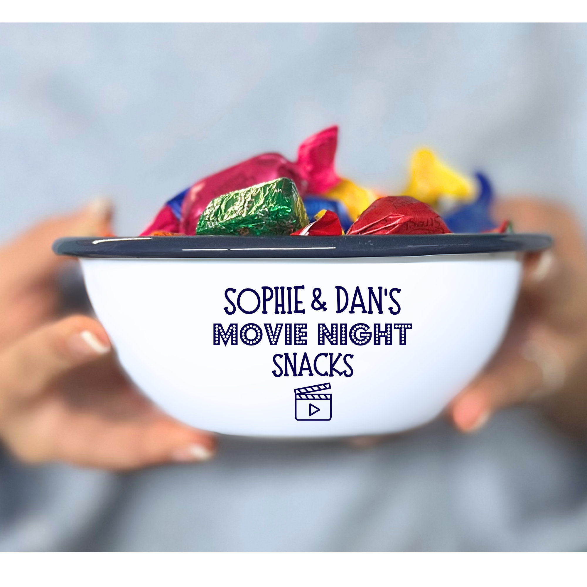 Personalised Enamel Snack Bowl, Date night Treat Bowl, Movie Night ...