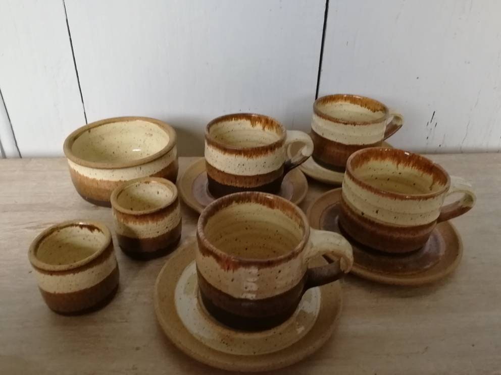 "A Really Cool set of 4 cups and Saucers With 2 Egg cups and An Open sugar Bowl By Denis Lane o...