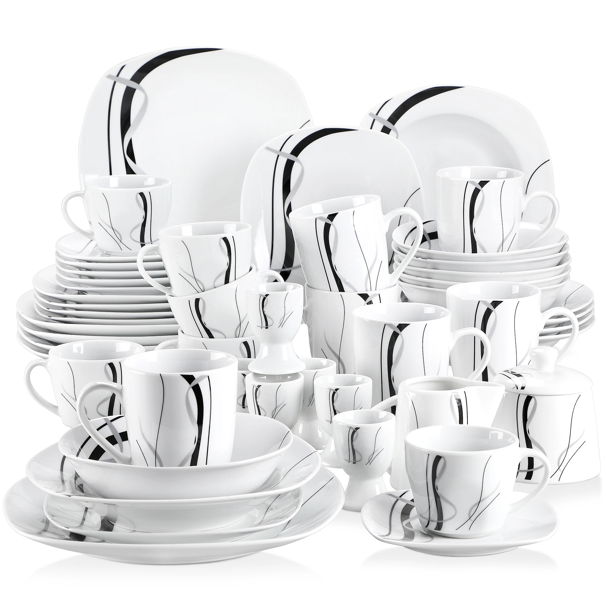 VEWEET FIONA 50/100-Piece Porcelain Dinner Set with Egg Cup,Cup&...