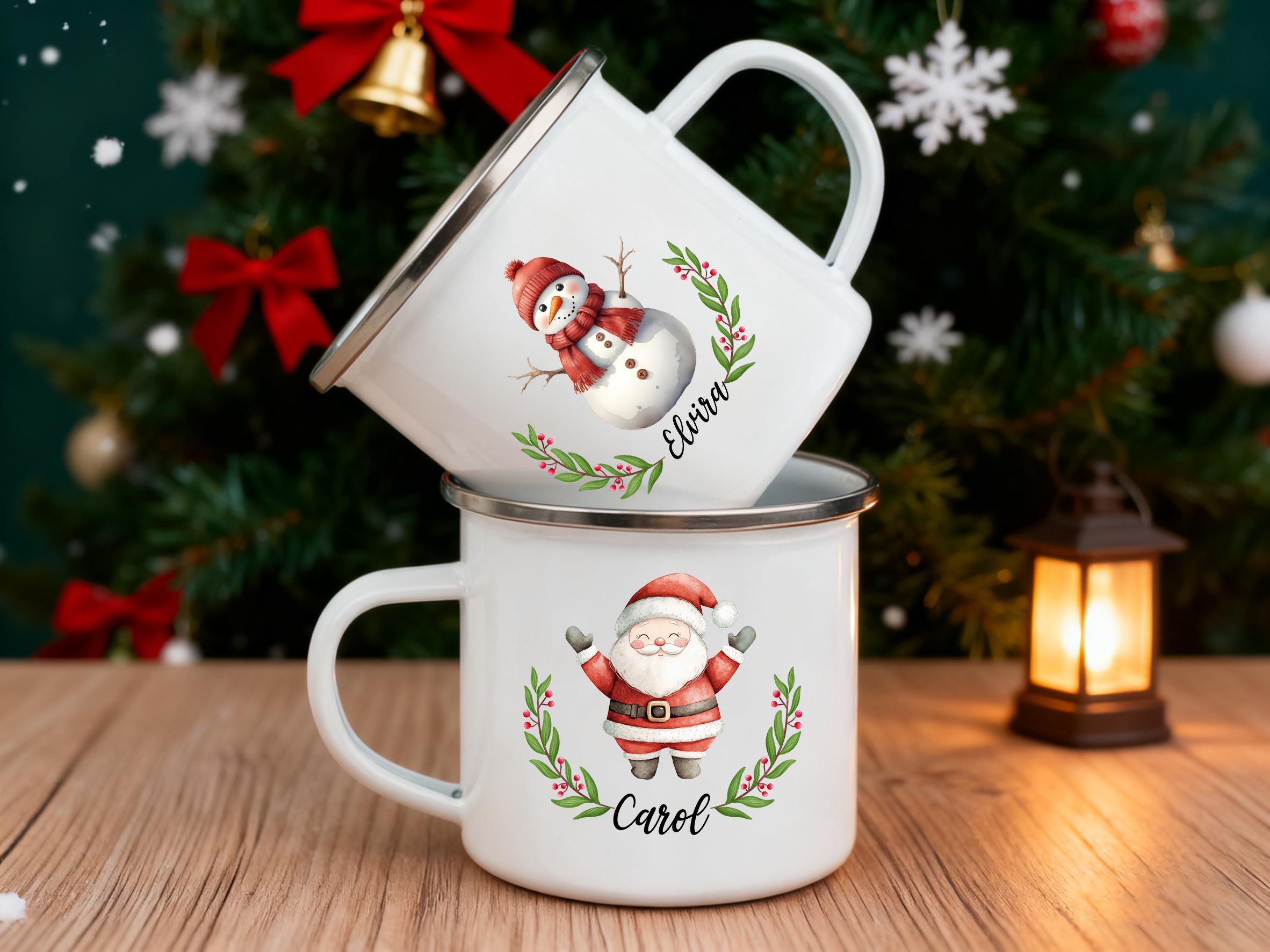 Personalized Kids Christmas Enamel Mug, Custom Enamel Mug for Child...