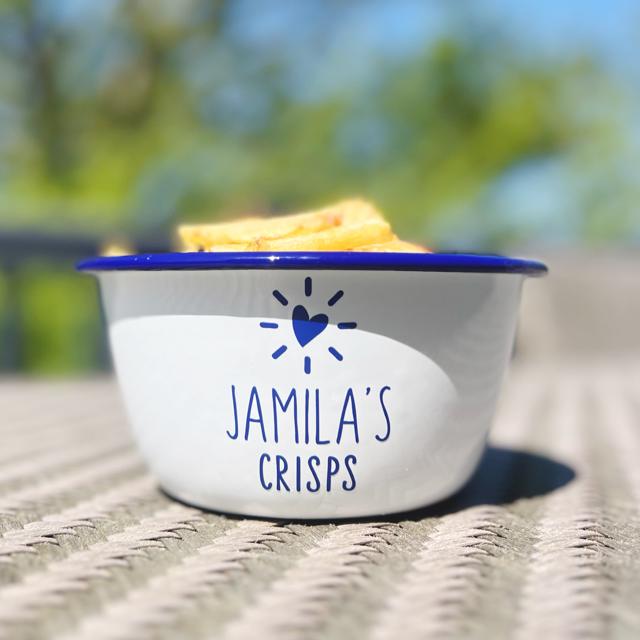 Crisps Personalised Snack bowl Enamel Blue Rim - Enamel Bowl - Enam...