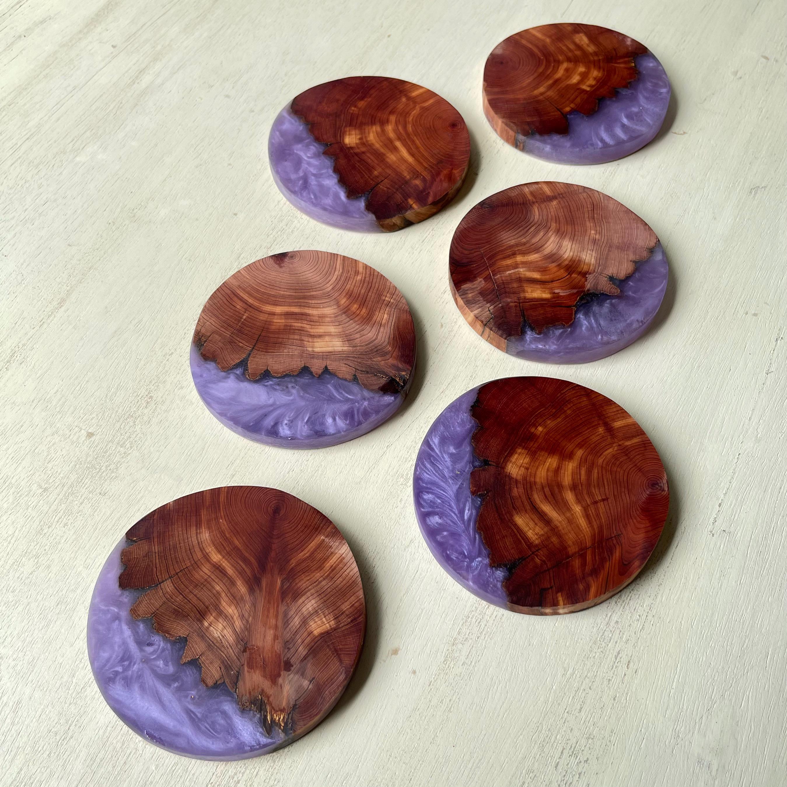"This is a beautiful, one-of-a-kind, handmade set of six wood and epoxy coasters. Gorgeous Arom...