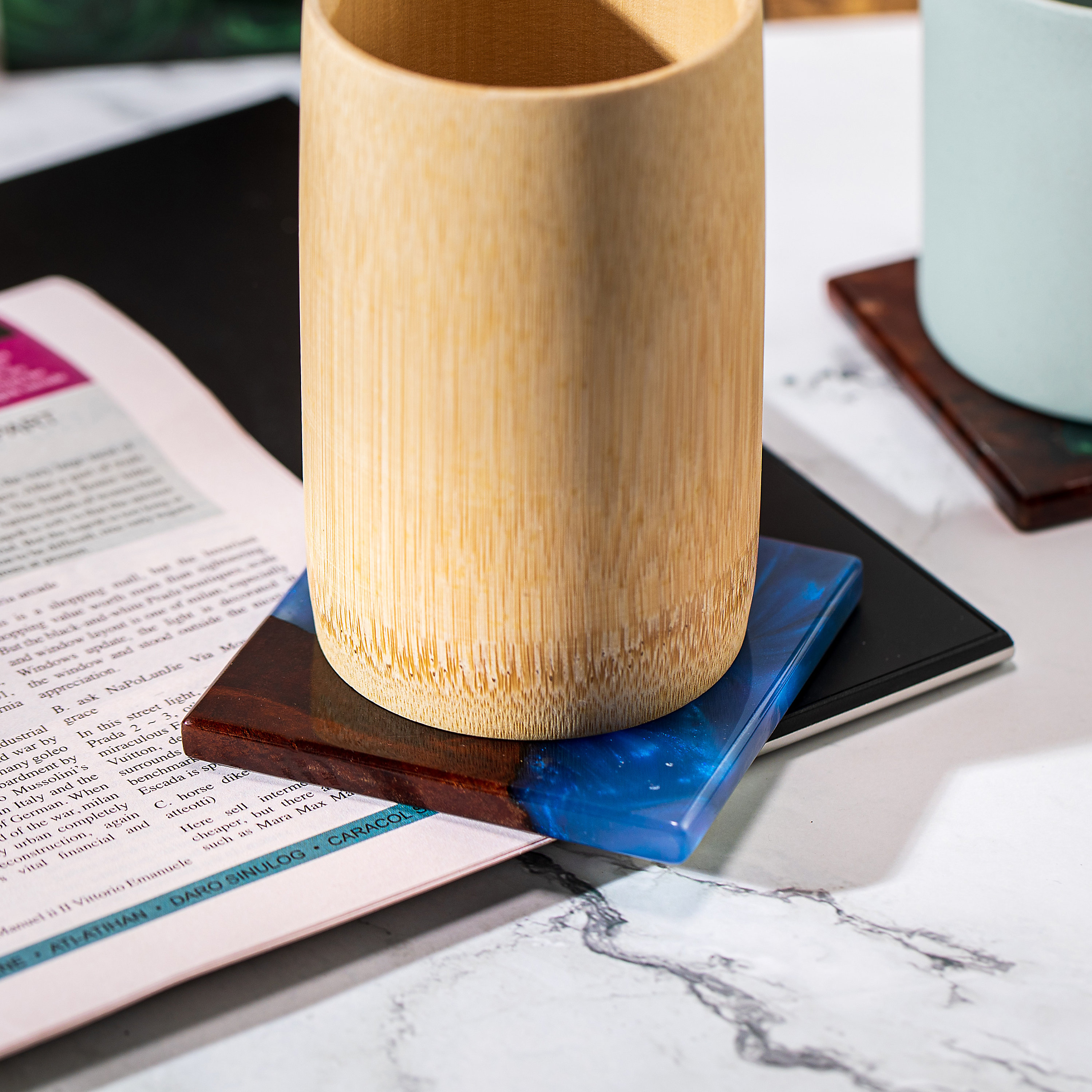 Resin coaster set, made of bamboo wood/ glass coasters / unique / b...