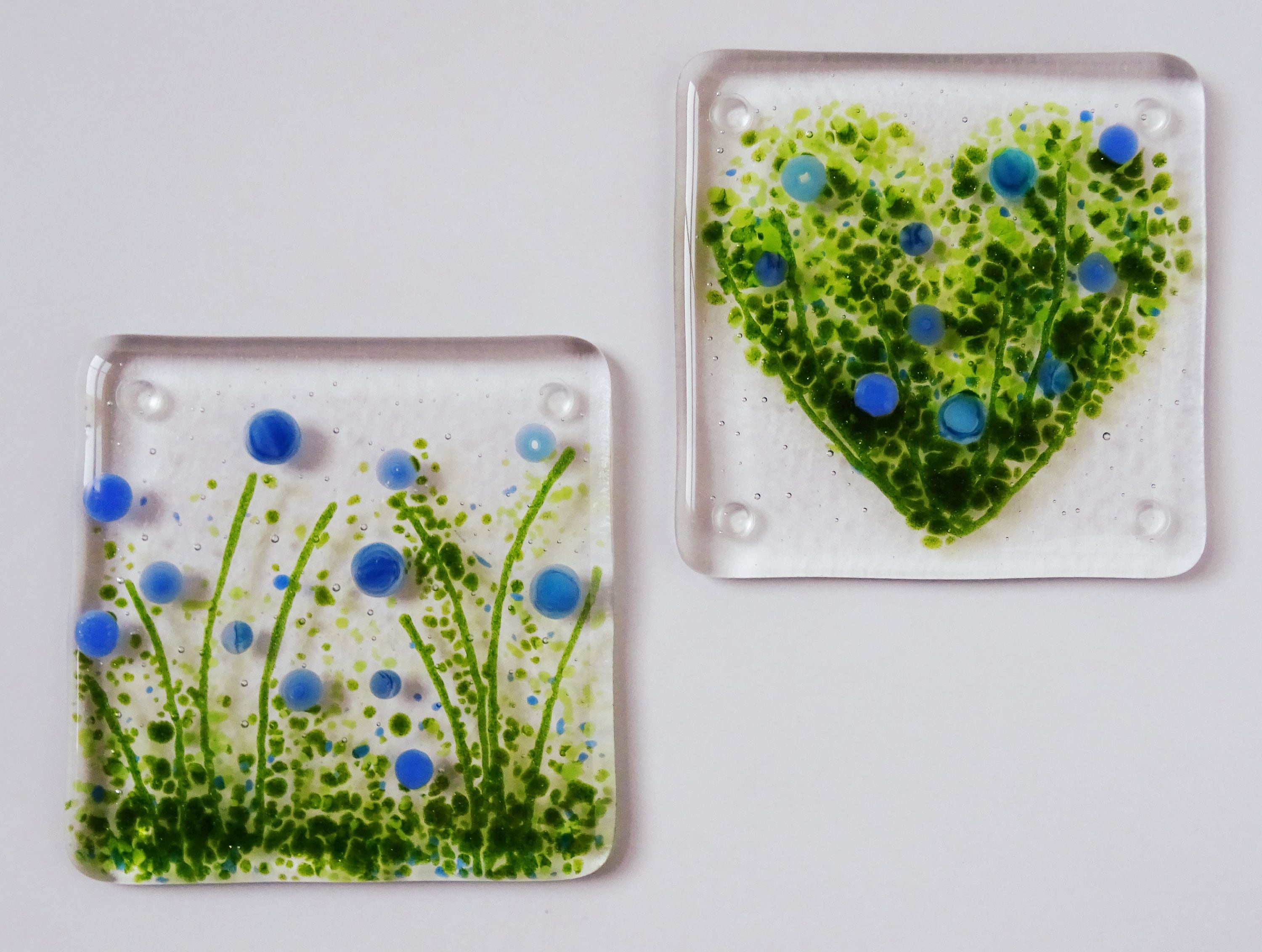 These flower meadow coasters are handmade in fused glass. There is a choice of flower colours and al...