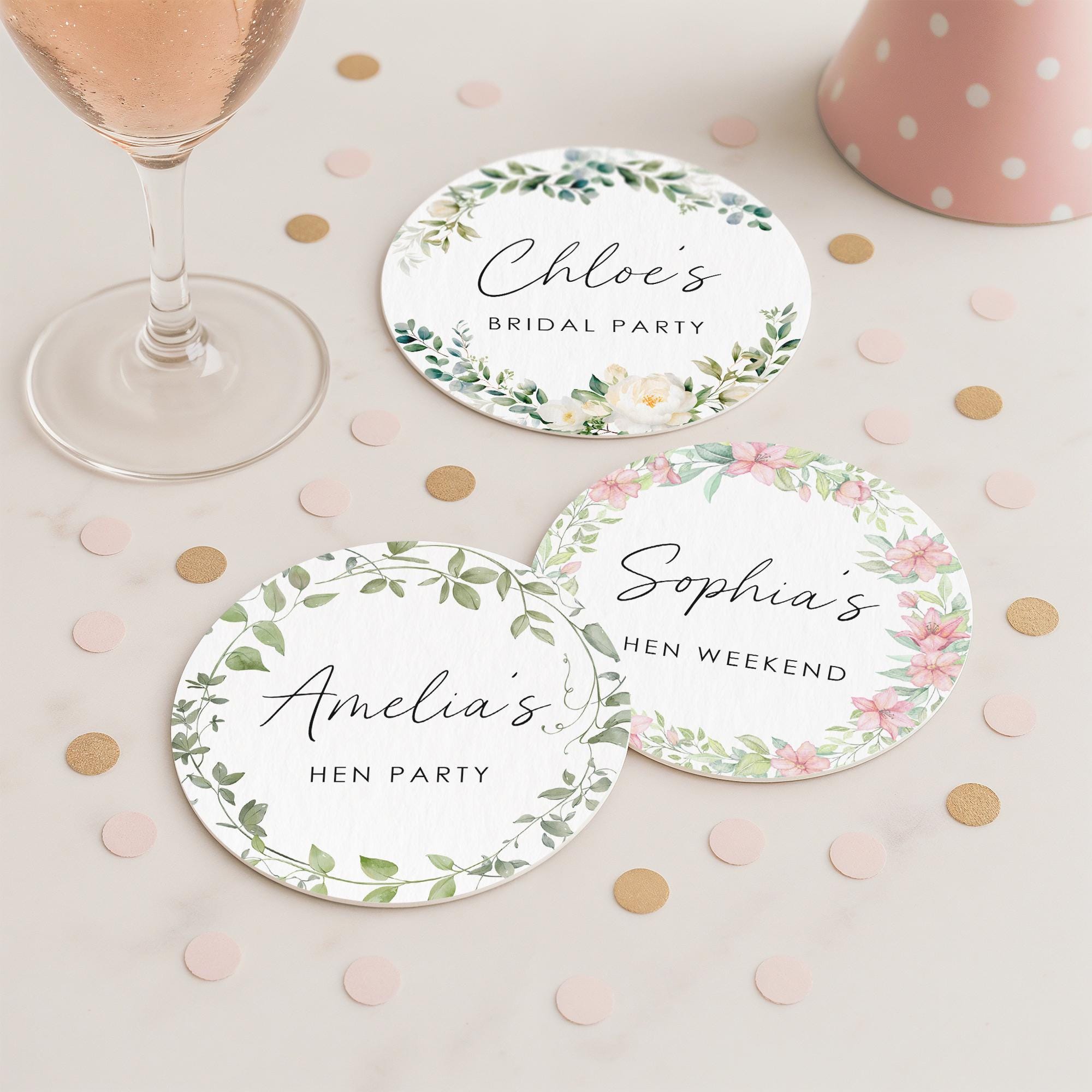 Personalised Floral Hen Do Party Coasters, Favours, Hen Gifts, Brid...