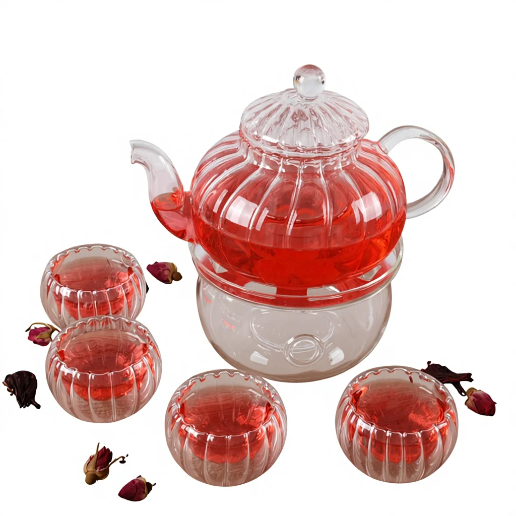 Title: Heat-Resistant Glass Tea Set - Clear Borosilicate Teapot with Cups, Elegant Loose Leaf Tea In...