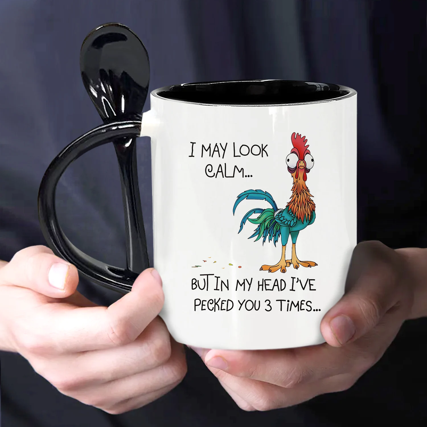 1PC, Gifts for Chicken Lover, I May Look Calm But In My Head I've Pecked You 3 Times Mugs, 11oz Cera...
