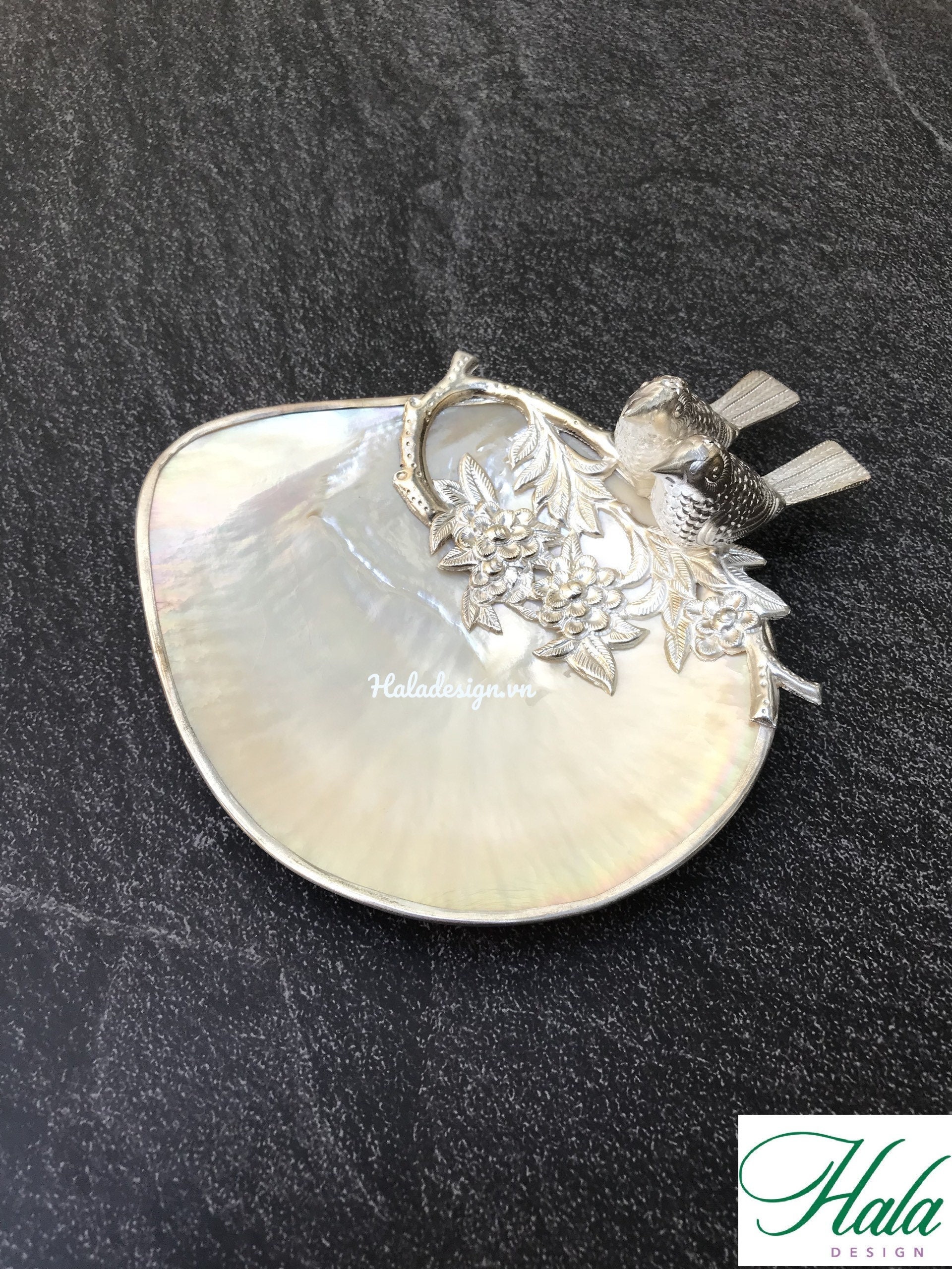 Hand Chased Silver Plated Birds on Mother of Pearl Dish, Luxury Bar...