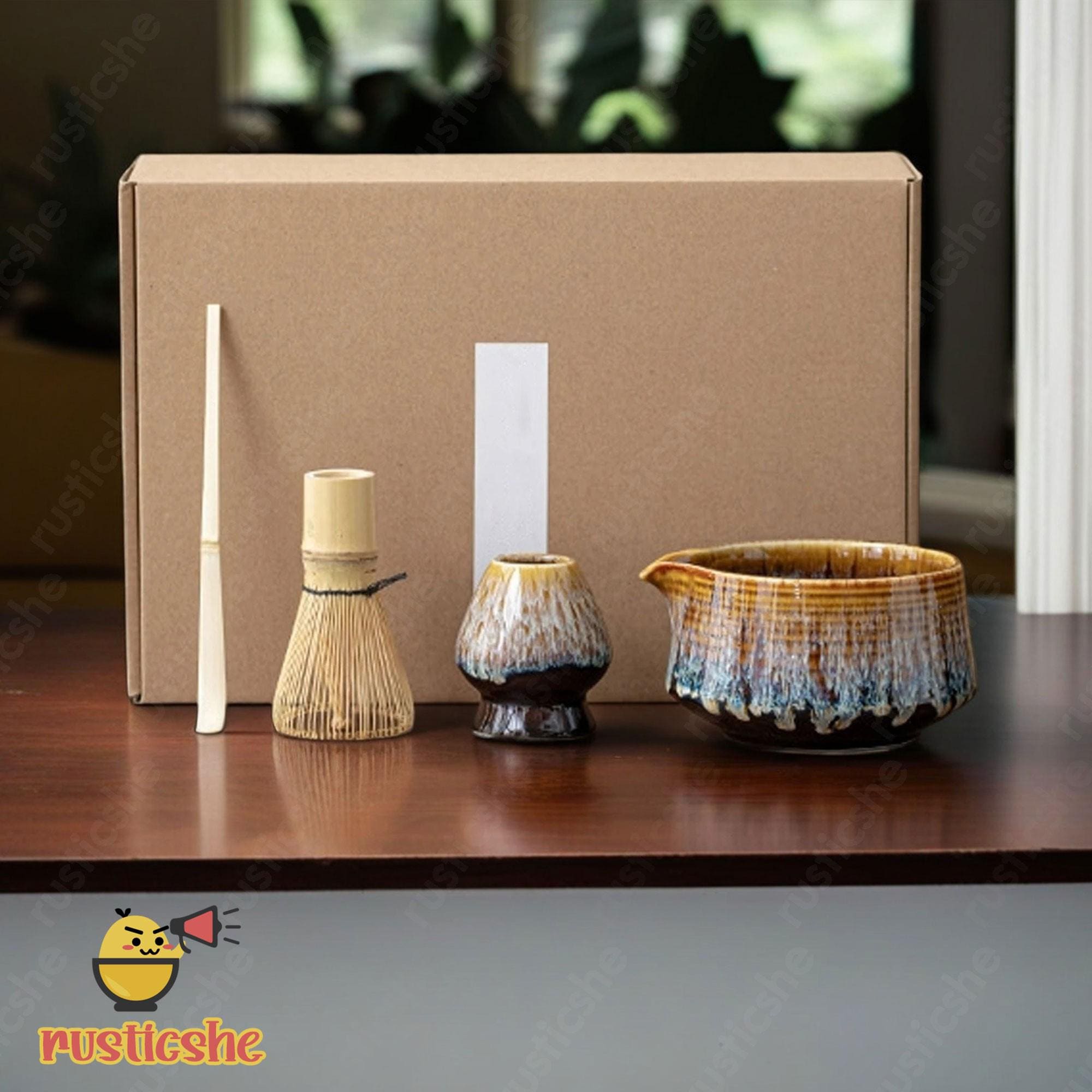 Handmade Kiln Yellow Ceramic Matcha Bowl Set, Matcha Tea Ceremony S...
