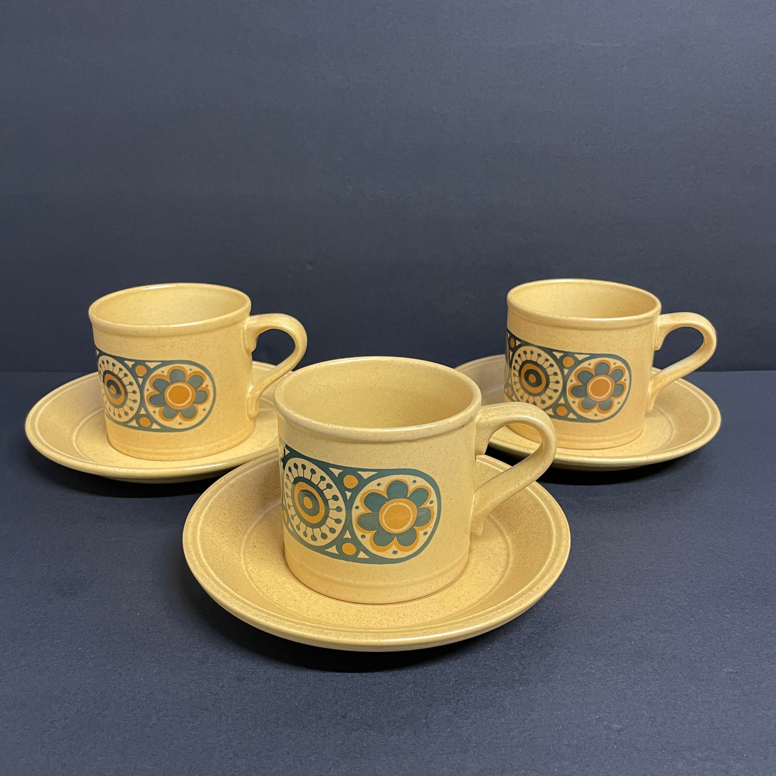 "Free shipping to Canada Vintage kiln craft bacchus ironstone cups and saucers set of 3 pairs c...