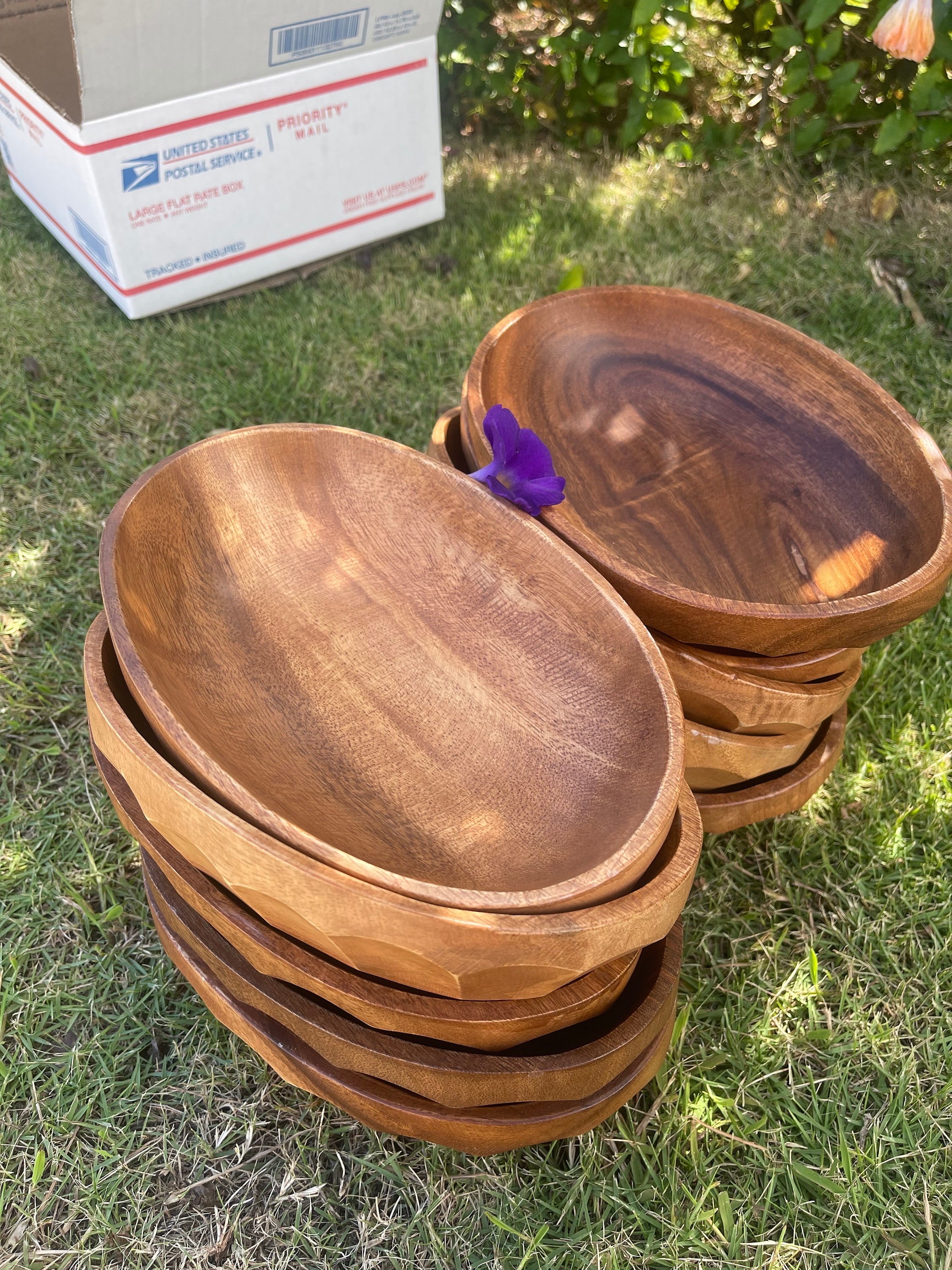 "OBLONG shaped serving bowls for WHOLESALE; All hand crafted from beautiful acacia hardwood. Ca...