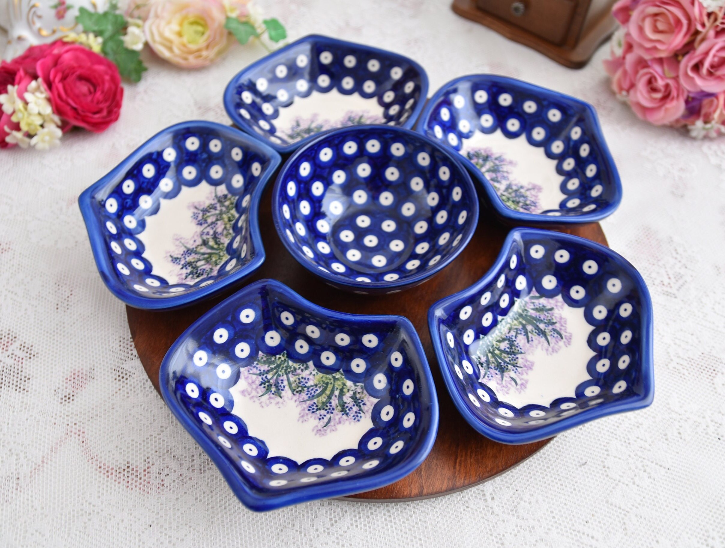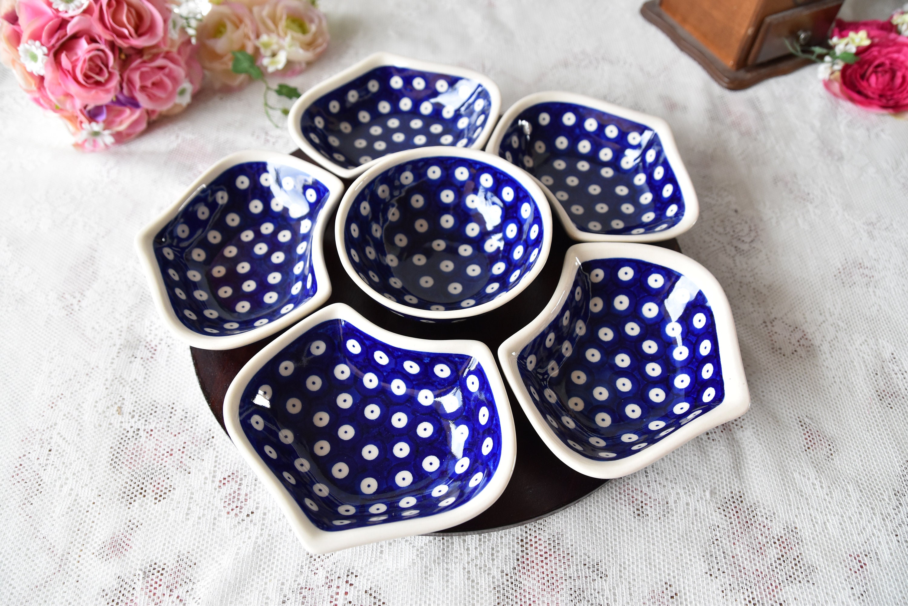 Polish pottery dipping bowls set Lazy Susan large dipping sauce bow...