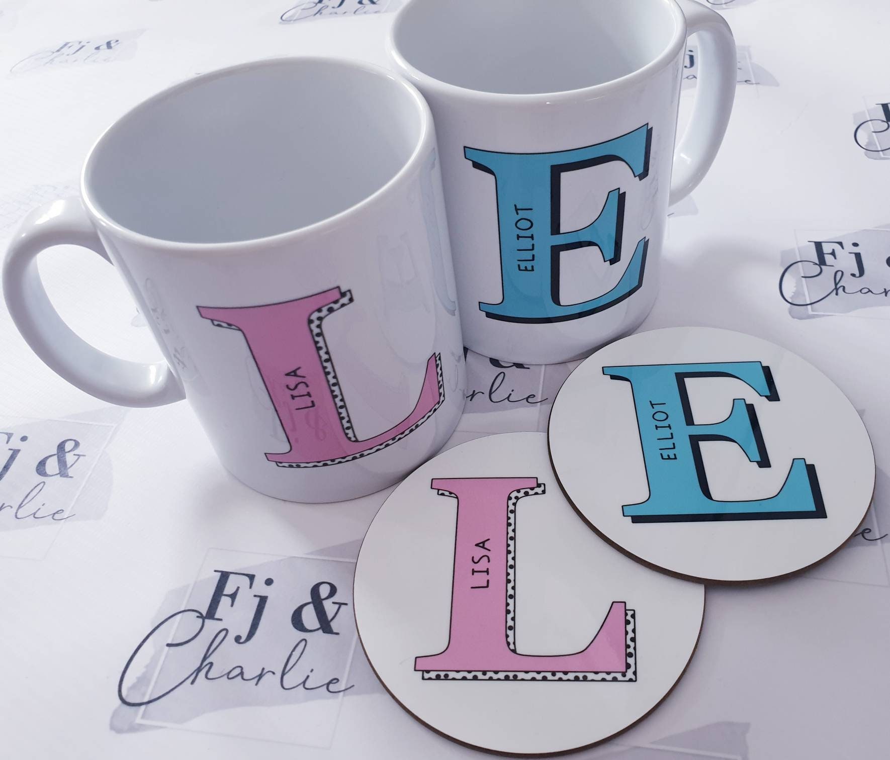 Personalised Initial Mug, Coaster, Letter & Name Ceramic Mug, M...