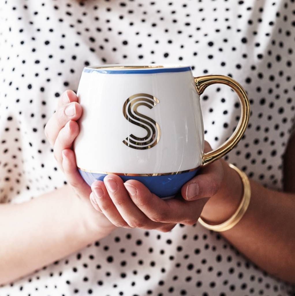 Personalized Monogram Mug: Gold Letter Library Mug in Gift Box