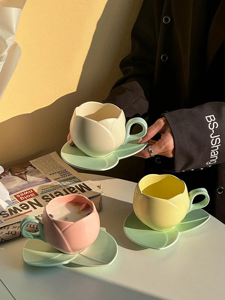 Cute Tulip Tray Suits Ceramics Mugs Flower-shaped Coffee Milk Mark ...