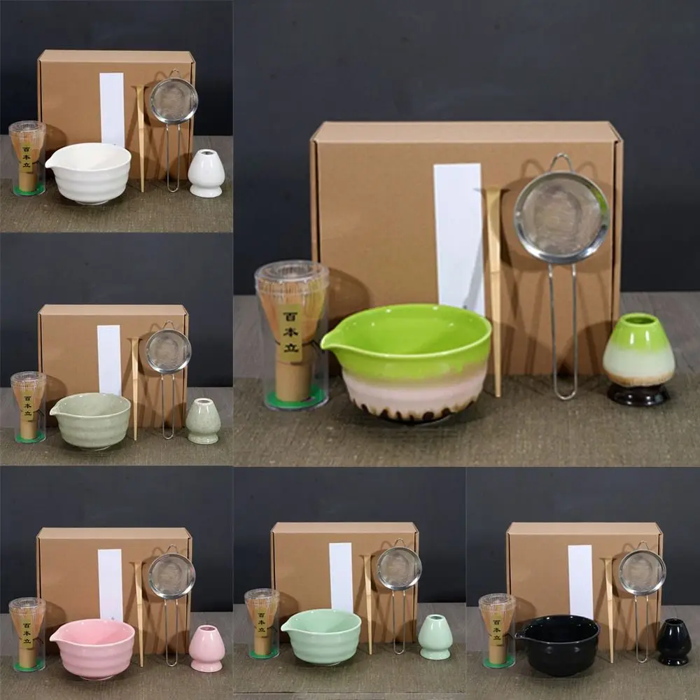 4PCS New Bamboo Ceramic Japanese Matcha Tea Set Reusable Safe Match Bowl Food Grade Japanese Chasen