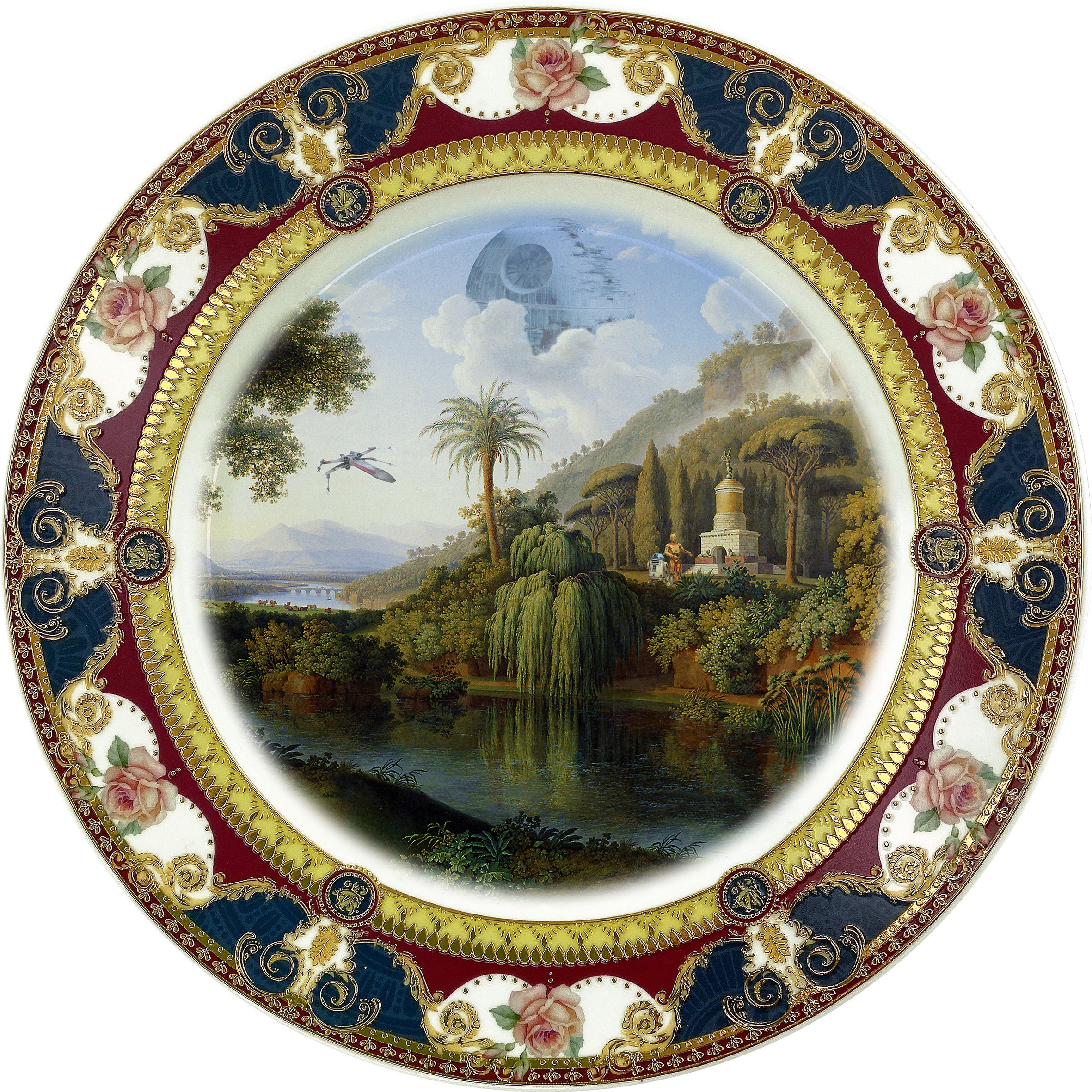"Birdman - Altered Fine China Plate Gran plato de porcelana con importante marco en plata oscur...