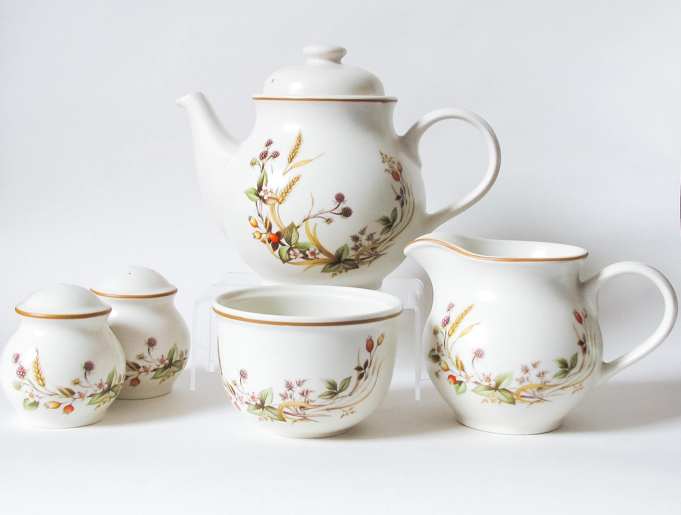 Vintage St Michael Harvest Tableware: Salt and Pepper Pots, Sugar B...