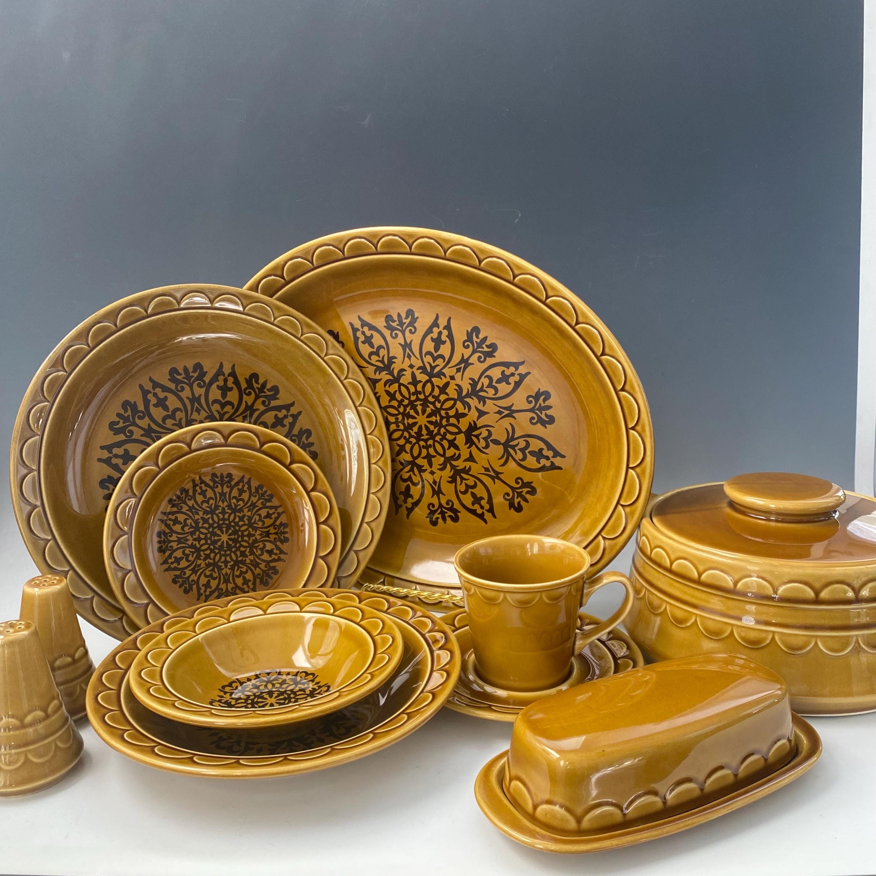 "Your choice of Vintage Coventry Castilian/Homer Laughlin Golden Harvest dinnerware. All pieces...