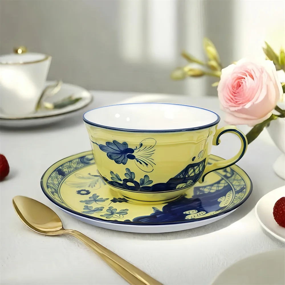 High-end Oriental Series Coffee Cup and Saucer Ceramic Mug Pink Yellow Blue Green Printed Plates Tea...