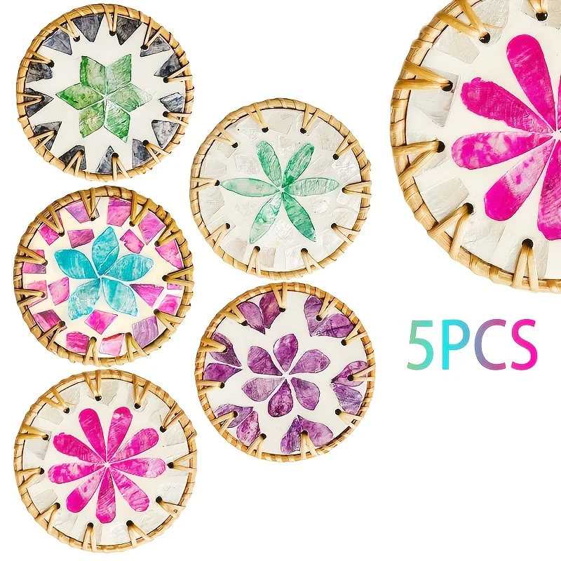 5 pieces of woven shell coasters, Southeast Asian style coffee tabl...