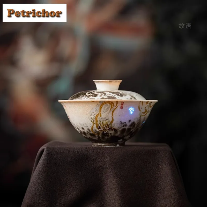 Dunhuang Apsaras Wood-fired Porcelain Gaiwan Ancient Tea Tureen Tea Bowl With Lid Kit Tea Brewing Co...