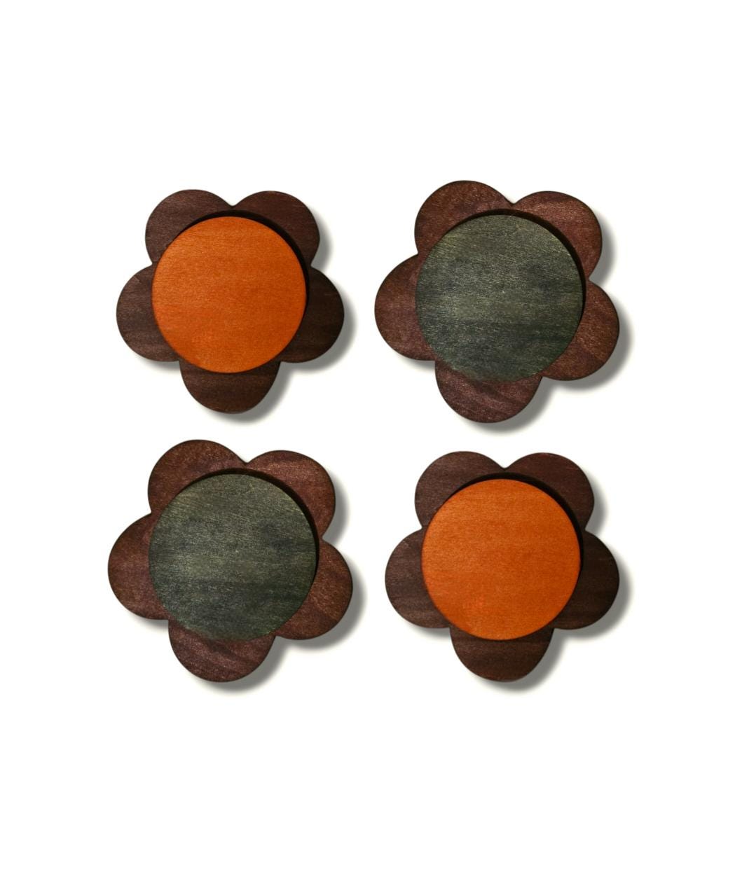 Mid-Century Modern Plywood Flower Coasters - Orla Kiely Inspired