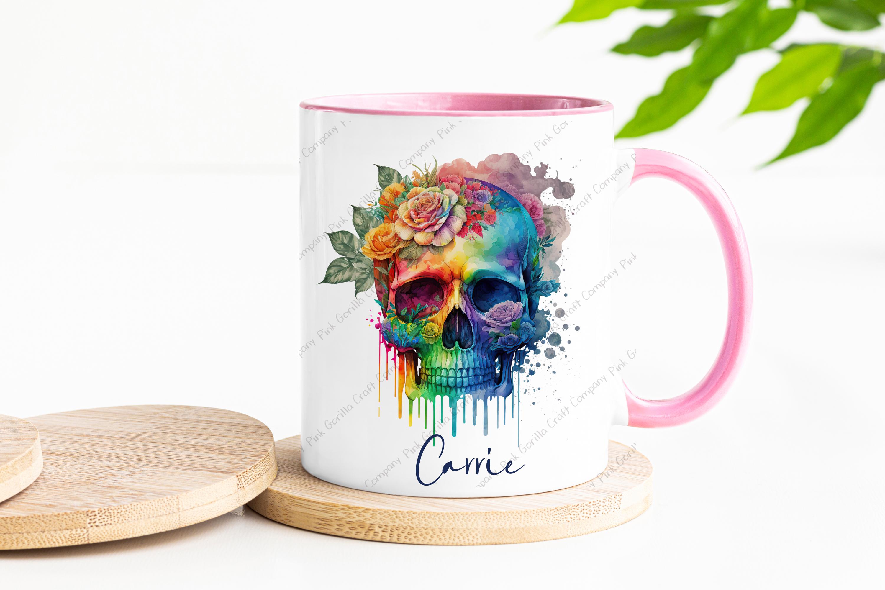 Skull Mug, Mug for her, Floral Skull, Personalised Skull, Skull for...