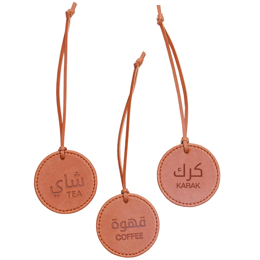 PU Leather Tags for Tea and Coffee Flasks Arabic Logo Print Charm L...