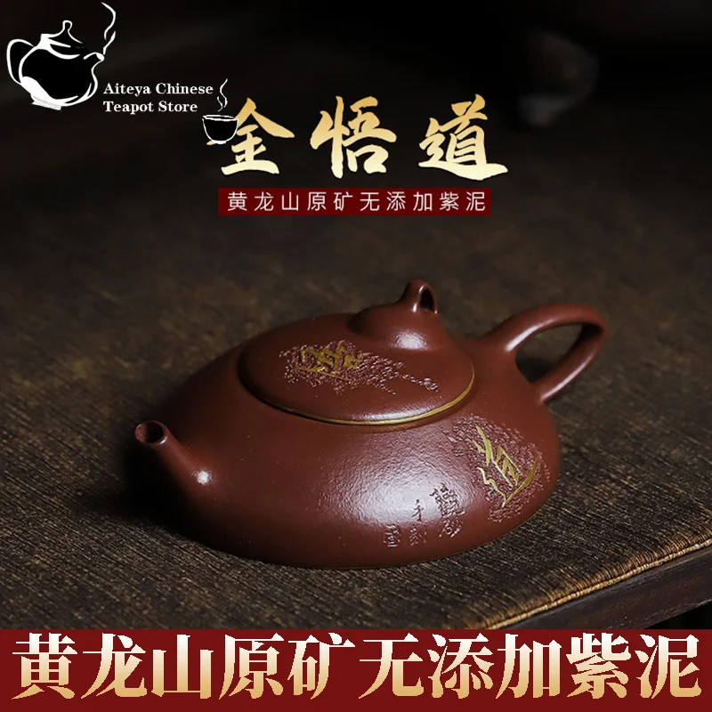 Yixing handmade purple clay teapot, original ore, purple clay, gold, enlightenment, kung fu tea set,...
