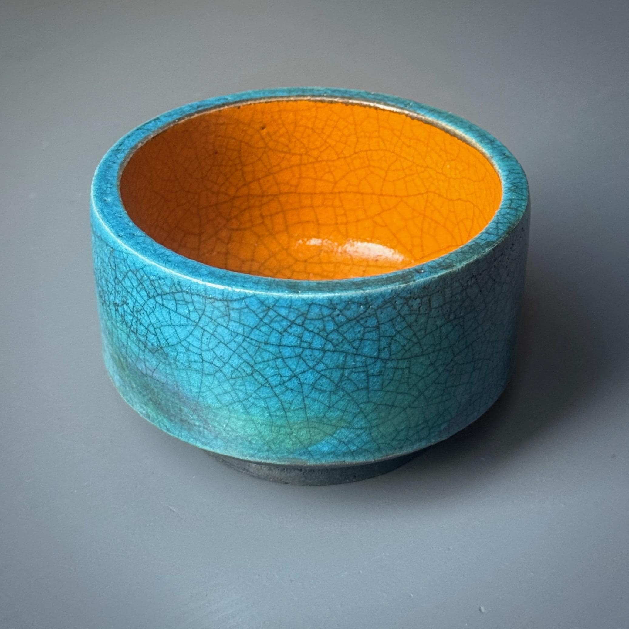 Bold Bright Orange & Metallic Turquoise Crackle Glaze Raku Fire...