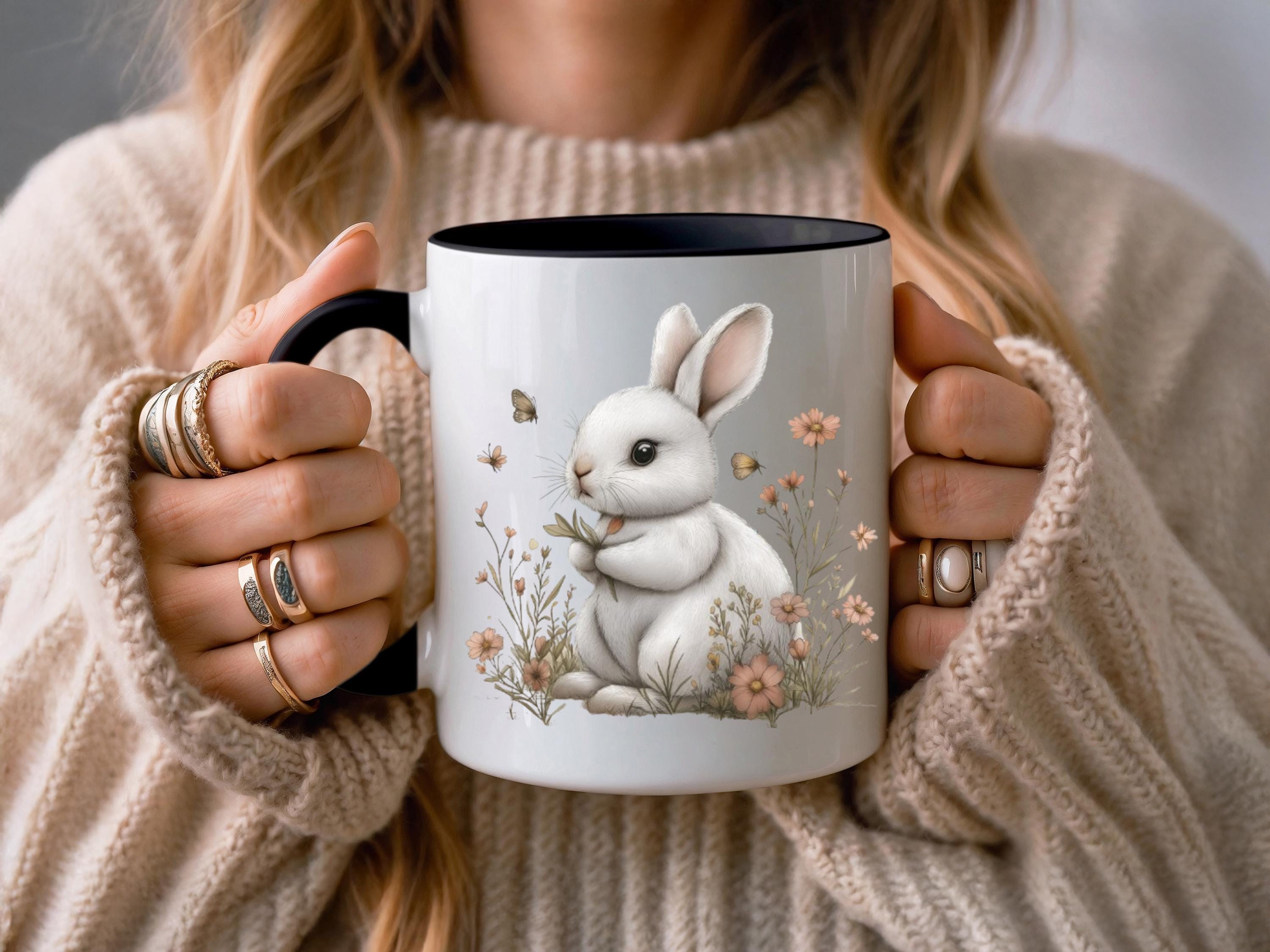 Rabbit Mug Easter Gift Spring Coffee Mug Bunny Rabbit Mug Happy Eas...