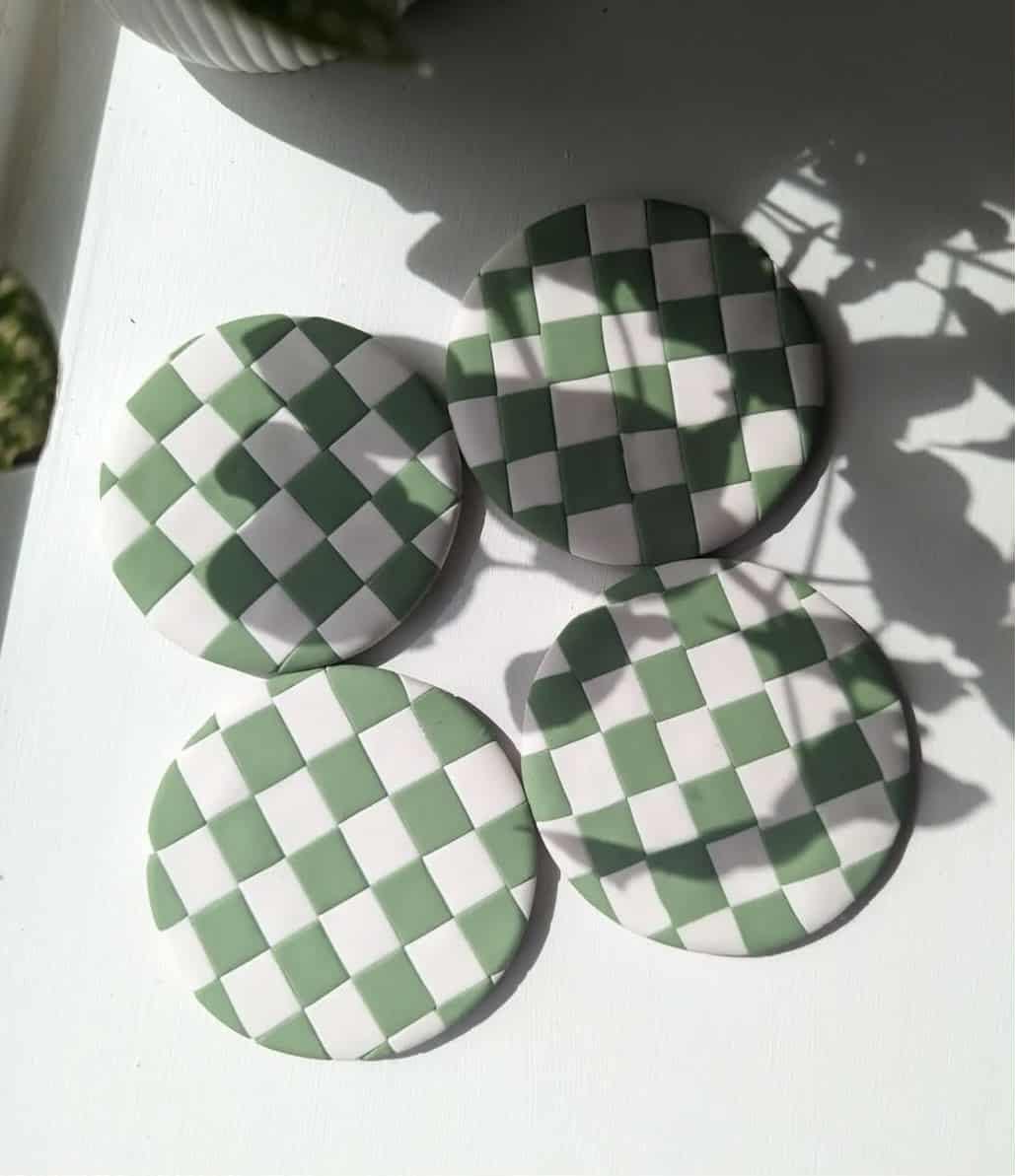 Sage Green Chequered Coasters | Green Coasters | Chequerboard Coast...