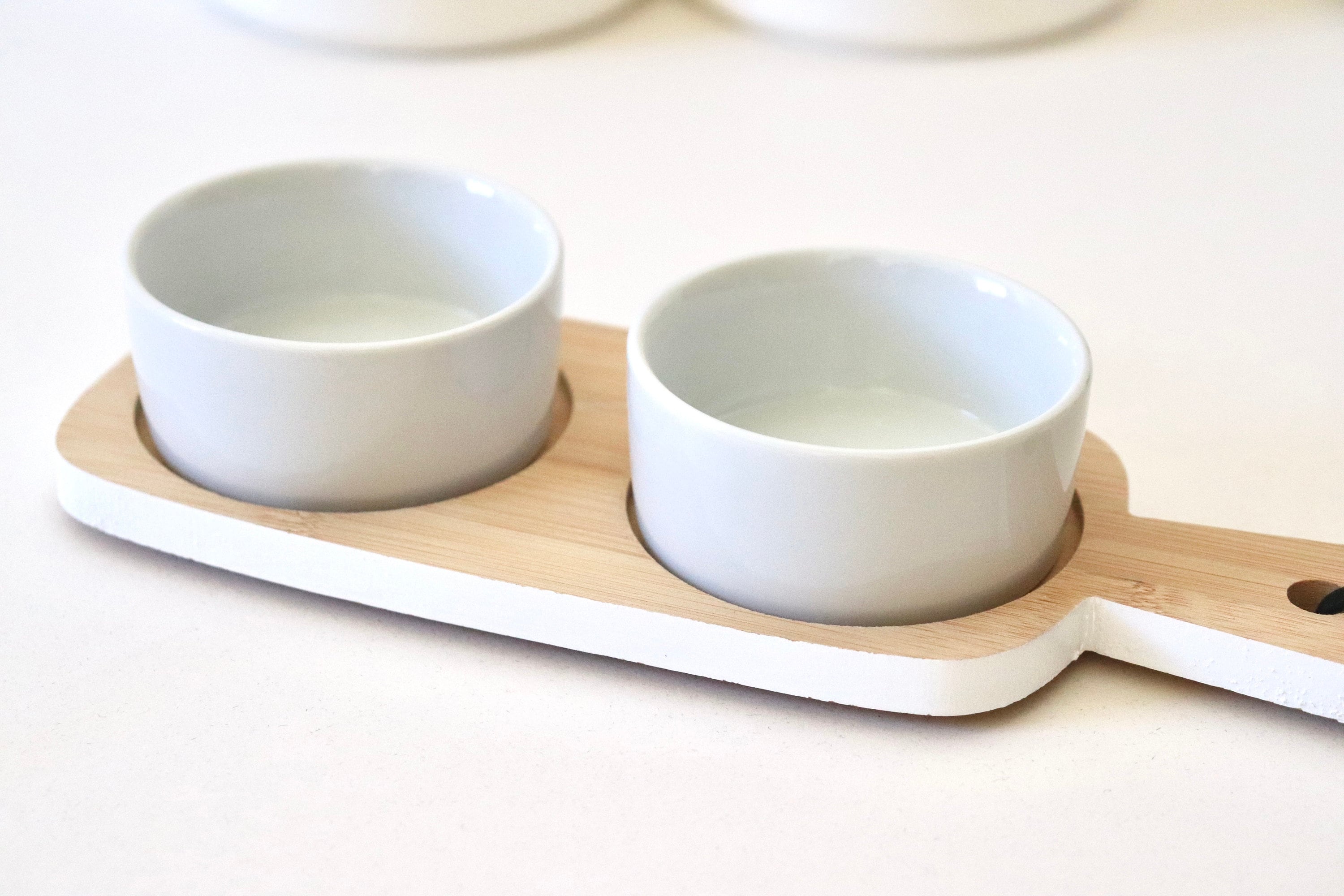 Ceramic Snack Bowls, Set Of 2 Dip Bowls With bamboo Tray, Double Di...