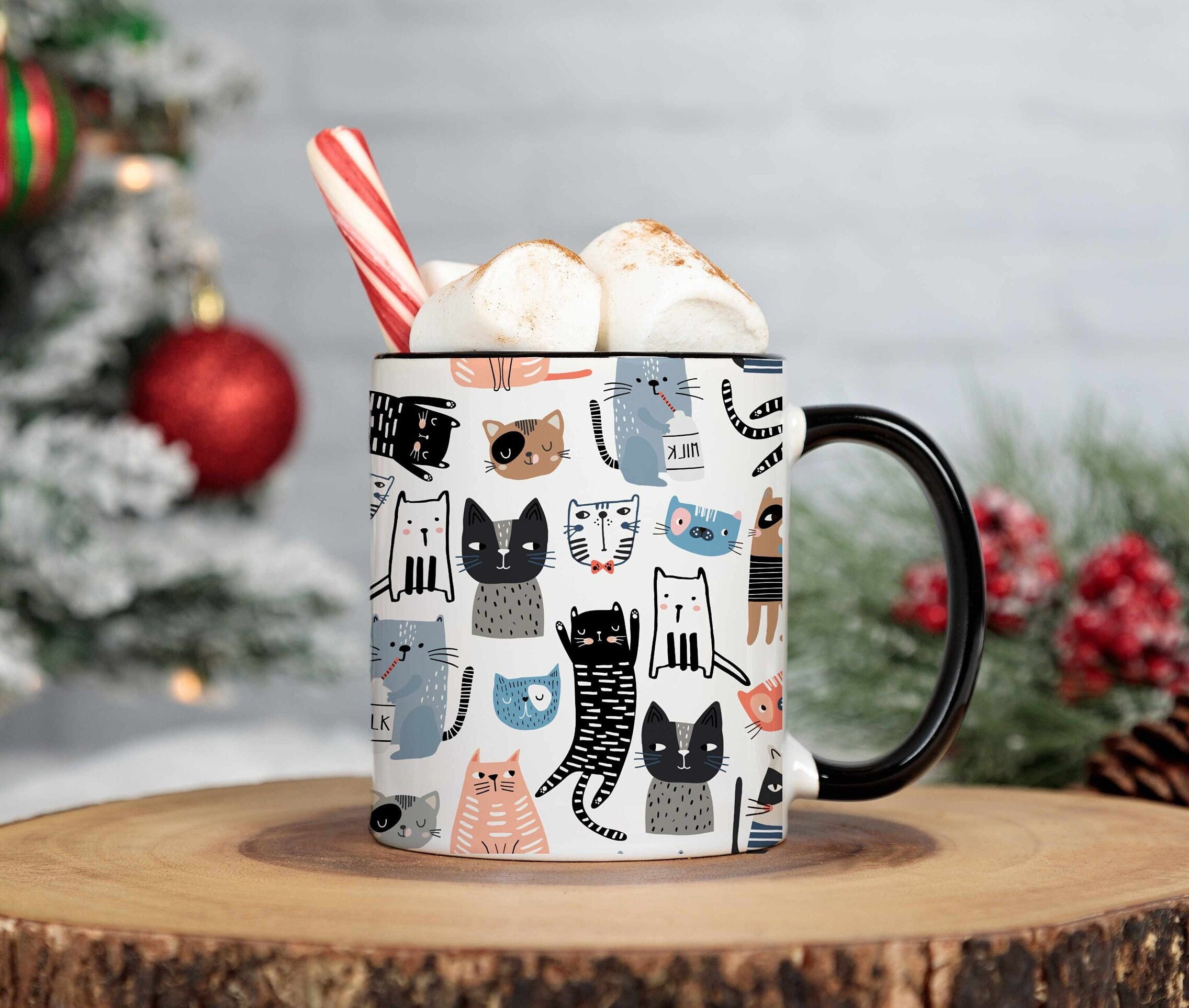 Custom Cat Mug Cat Lover Gift For Cat Mom Ceramic Latte Mug Black C...